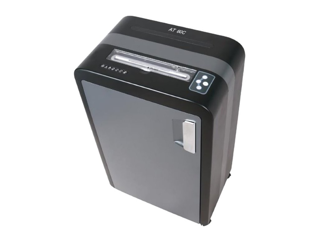 AT skartovačka AT-60CSkartovací stroj praktického designu, který je vhodný pro skartaci dokumentů o šířce až 230 mm. Stroj je standardně vybaven automatickým systémem start/stop, zpětným chodem, tepelnou pojistkou motoru proti přehřátí a signalizací přeplněného koše. Příležitostně lze skartovat sešívací i kancelářské sponky, a díky samostatnému vstupu i kreditní karty a CD. Lehce vyprázdnitelná odpadní nádoba má objem 35 l. Praktická pojezdová kolečka usnadňují manipulaci.