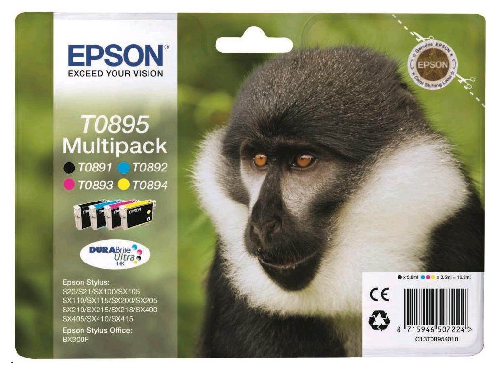 Atrament EPSON čierny + pruh Stylus "Monkey" S20/SX100/SX200/SX400 (T0895) multipack C13T08954010