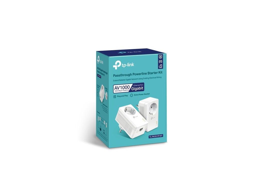 AV1000 Gigabit Passthrough Powerline Starter Kit KIT: 2× TL-PA7017P SPEED: 1000 Mbps Powerline SPEC: Broadcom CPU, 1× Gi TL-PA7017P KIT