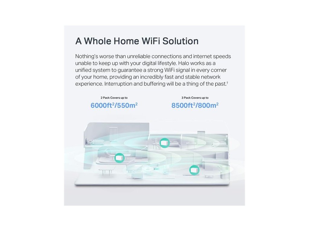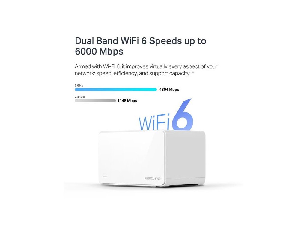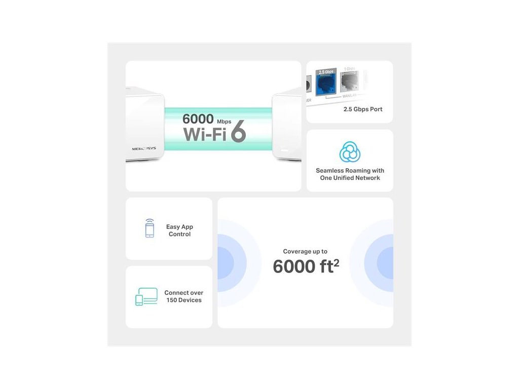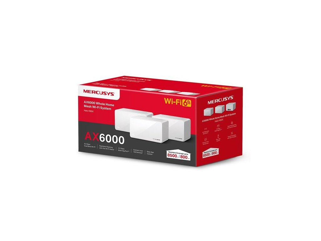AX6000 Whole Home Mesh Wi-Fi 6 System SPEED: 1148 Mbps at 2.4 GHz + 4804 Mbps at 5 GHz SPEC: Internal Antennas, 1× 2.5 G Halo H90X(3-pack)