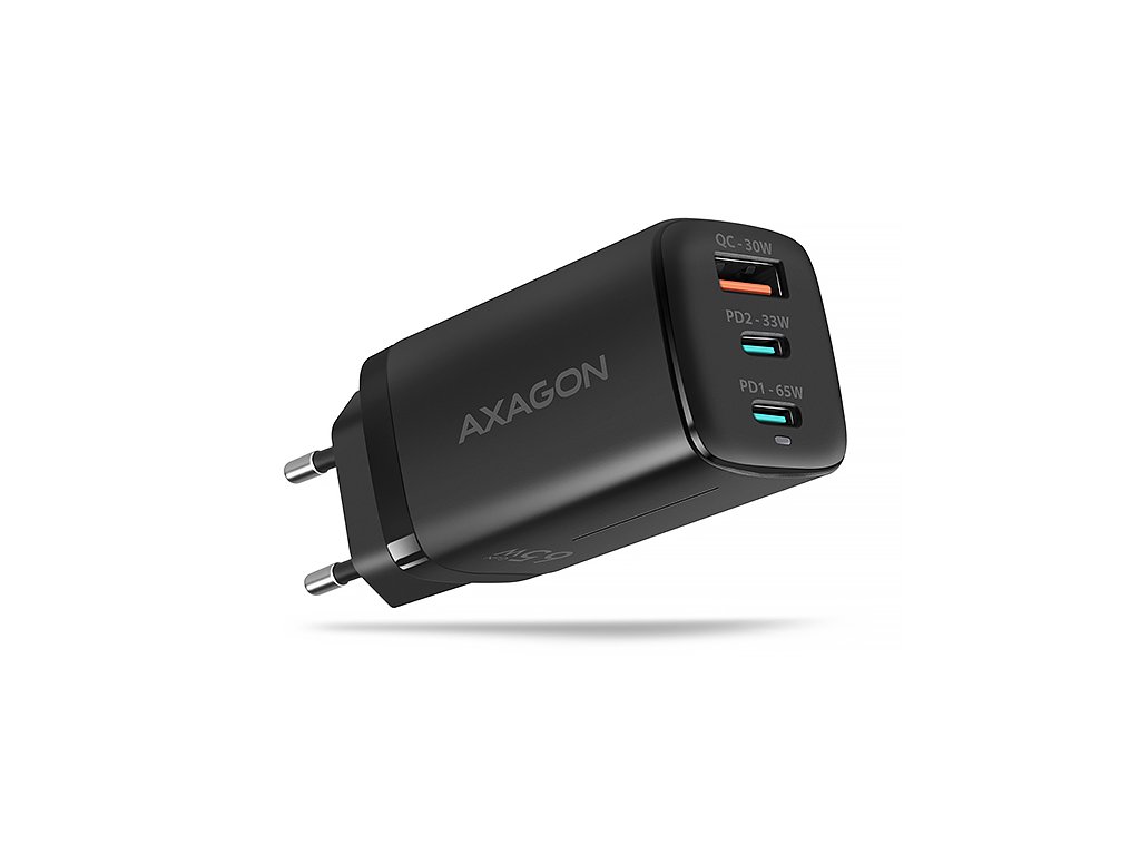 AXAGON ACU-DPQ65, GaN nabíjačka do siete 65W, 3x port (USB-A + dual USB-C), PD3.0/QC4+/PPS/Apple ACU-DPQ65