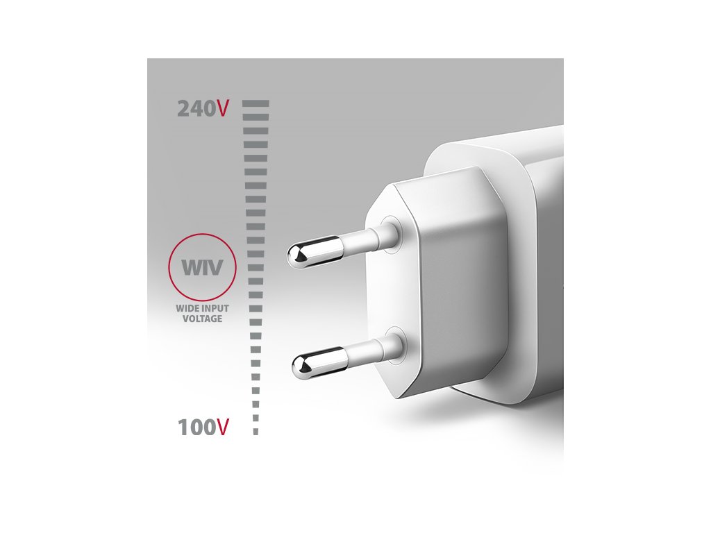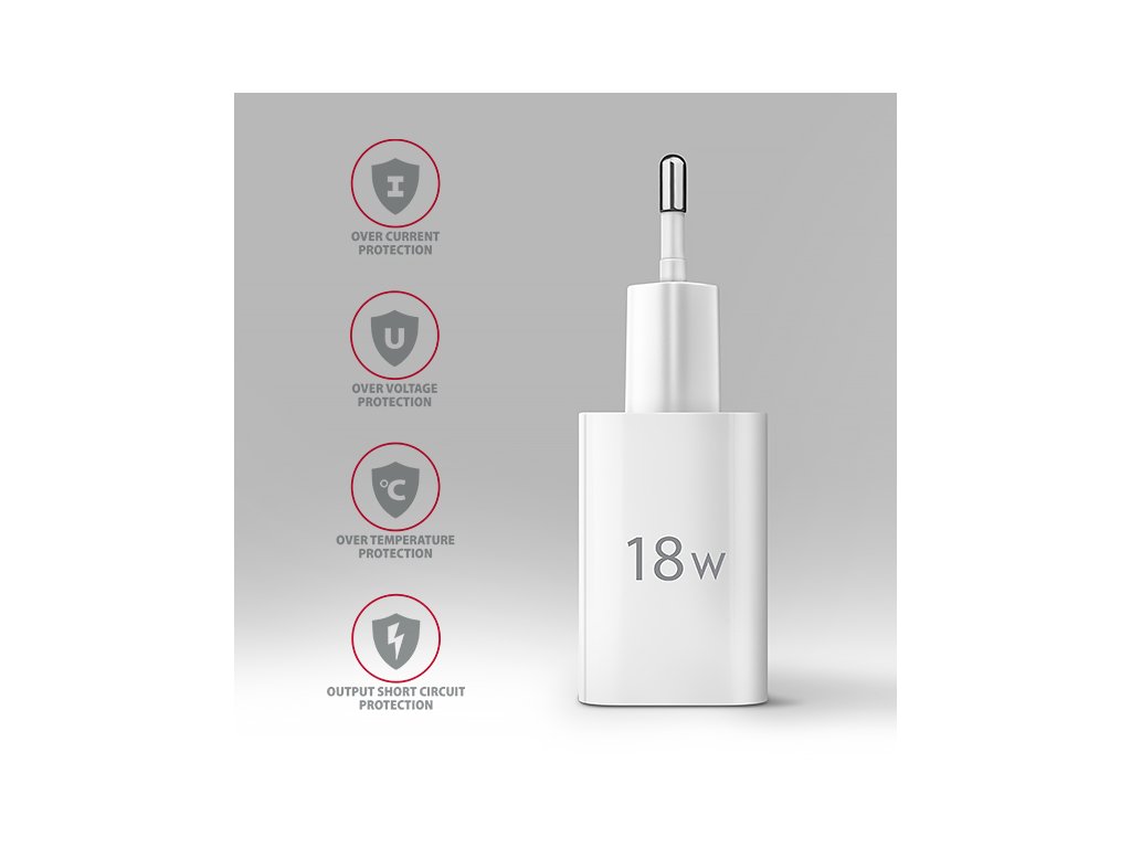 USB nabíječka do sítě AXAGON ACU-QC18W je určena pro nabíjení mobilních zařízení. Díky maximálnímu výkonu 18W dokáže nabíječka dobíjet telefony, tablety a další mobilní zařízení nejvyšší možnou rychlostí. Adaptér nabízí standardní USB-A konektor. Nabíječka je vybavena výstupem Quick Charge 3.0 USB typu A, což umožňuje rychlé nabíjení smartphonů a tabletů výkonem až 18W. Adaptér je také kompatibilní s dalšími standardy rychlého nabíjení telefonů, jako jsou Apple iPhone, iPad, Samsung, Huawei, Honor, Xiaomi, Motorola a dalších. Pokročilý systém ochran na výstupu nabíjecího adaptéru chrání nabíjené zařízení před poškozením. Funkce nabíječky také zajistí rozpoznání nabíjeného zařízení a zvolení optimální rychlosti a průběhu nabíjení. Tělo napájecího adaptéru má příjemný tvar a kompaktní velikost. Kombinace malých rozměrů a širokého rozsahu vstupního napětí dělá z této nabíječky ideálního pomocníka na cesty. Vstup: • vstupní napětí AC 100V-240V / 0.4A / 50-60 Hz (funkce WIV), podporuje více národních napájecích standardů • dvoukolíková euro vidlice - integrovaná v těle napáječe Výstup: • USB-A port QC (telefony) max. 18W: 5V/3A, 9V/2A, 12V/1.5A • Technologie nabíjení: QC 3.0, QC 2.0, AFC, FCP, SMART, Apple 2.4A Maximální výkon: • maximální výkon 18W • maximální proud 3A Podporované technologie nabíjení: • Standardní nabíjení všech zařízení s podporou 5V a nabíjení Apple iPhone 5, 6, SE, 7. • SMART - nabíjení max. 5V/3A, Quick Charge 1.0, USB Battery Charging 1.2 (DCP 1.5A) a Apple 2.4A (iPad). • FCP - rychlé nabíjení pomocí protokolu Huawei Fast Charge Protocol. • AFC - rychlé nabíjení pomocí protokolu Samsung Adaptive Fast Charging. • QC - rychlé nabíjení pomocí protokolu Qualcomm Quick Charge 2.0, Quick Charge 3.0. Nabíječka podporuje funkce WIV, AIC, CC: • Wide Input Voltage - funkce širokého rozsahu vstupního napětí, chrání adaptér proti podpětí a přepětí na vstupu a umožní použití více ''národních napájecích standardů''. • Automatic Intelligent Communication - funkce automatického rozpoznání připojeného zařízení pro zvolení optimálních parametrů nabíjení. • Constant output Current - funkce udržování konstantního proudu zabraňuje kolísání výstupního výkonu, tato funkce zajišťuje stabilní průběh nabíjení. Komplexní ochrana výstupu: OCP, OVP, OTP, OSP: • Over Current Protection. Ochrana výstupu proti proudovému přetížení. • Over Voltage Protection. Ochrana proti přepětí na výstupu. • Over Temperature Protection. Ochrana proti přehřátí adaptéru. • Output Short Circuit protection. Ochrana proti zkratu na výstupu. Další vlastnosti: • rozměry těla napáječe 79 x 42 x 27 mm včetně vidlice, • hmotnost: 47 g, • materiál: nehořlavý plast. Balení v kartonové krabičce s otvorem pro zavěšení obsahuje: • bílá nabíječka do sítě, • vícejazyčný návod CZ/DE/DK/ENG/ESP/FIN/FR/GR/HR/HU/IT/NL/PL/PT/RO/RU/SK/SWE/BG/CN/TR/ARA.Dodatočné parametre