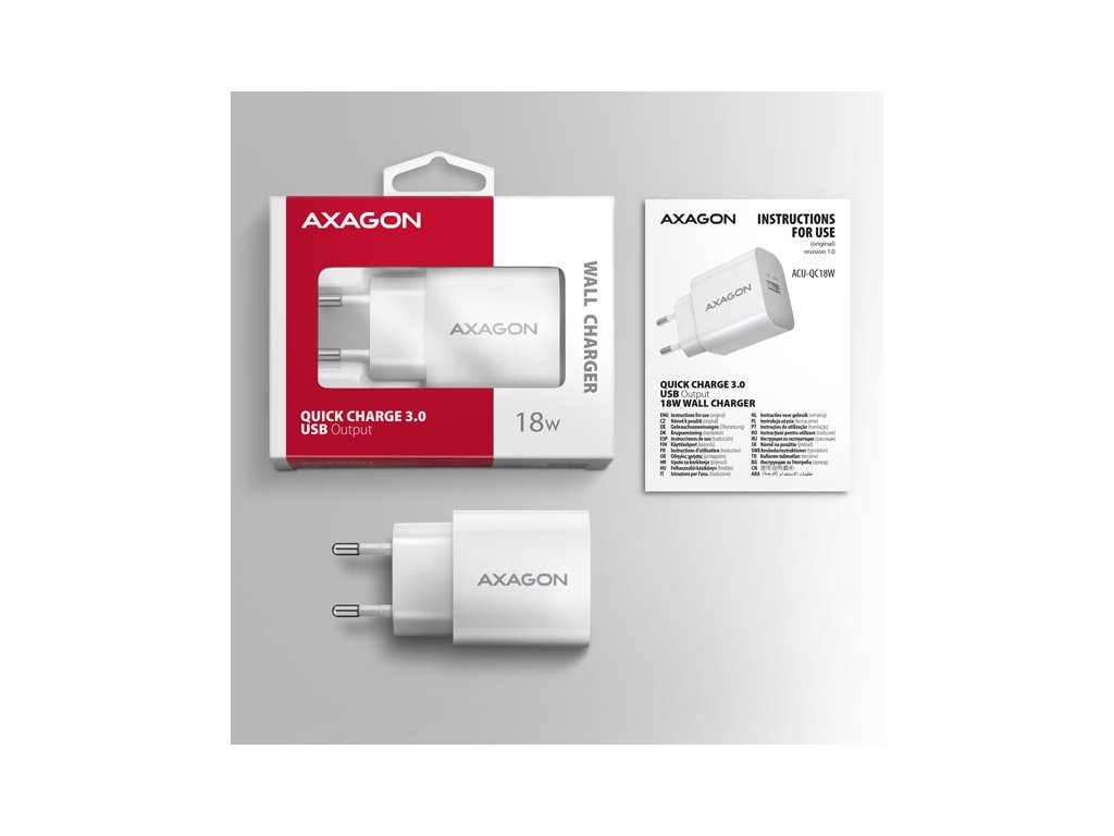 AXAGON ACU-QC18W, nabíjačka do siete 18W, 1x port USB-A, QC3.0/AFC/Apple, biela ACU-QC18W