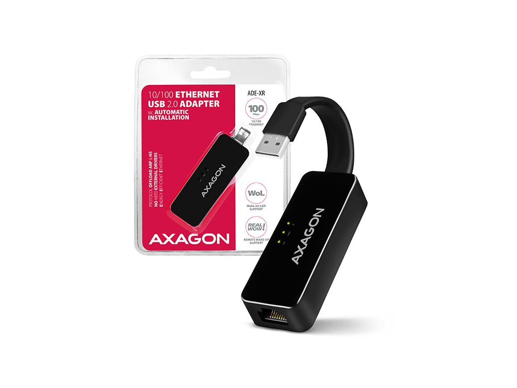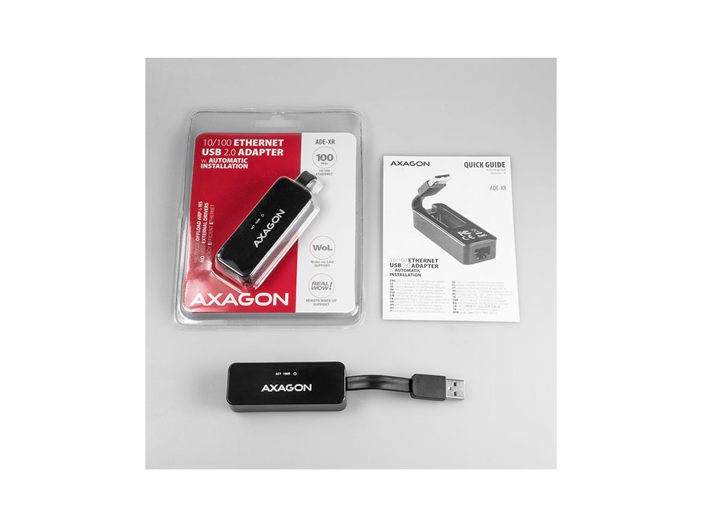 AXAGON ADE-XR, USB 2.0 - Fast Ethernet sieťová karta, auto inštal, čierna ADE-XR