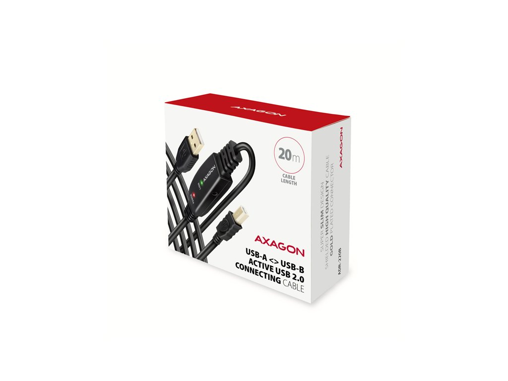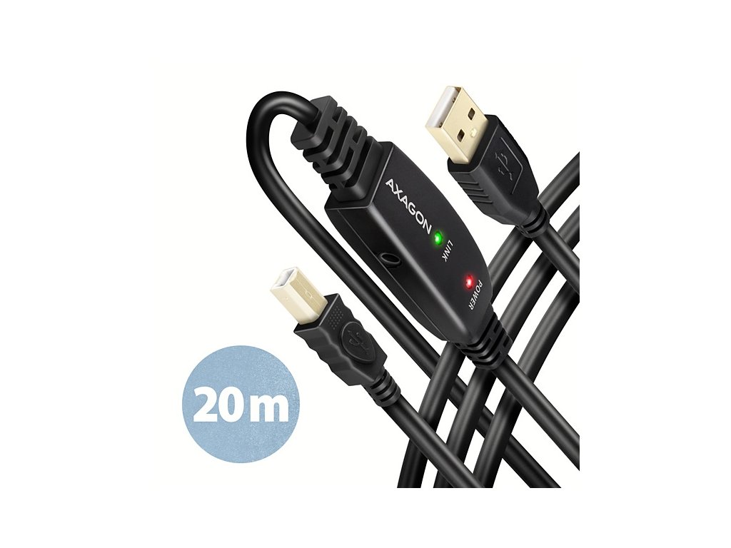 AXAGON ADR-220B, USB 2.0 A-M -> B-M aktívny prepojovací / repeater kábel, 20m ADR-220B