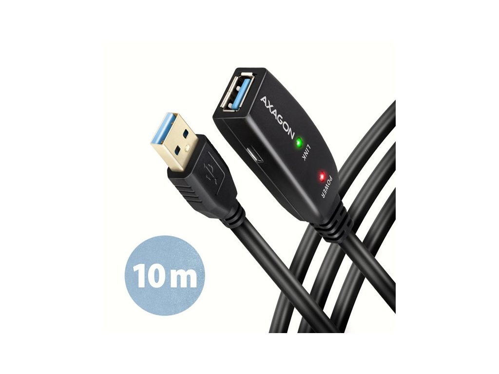 AXAGON ADR-310, USB 3.2 Gen 1 A-M -> A-F aktívny predlžovací / repeater kábel, 10m ADR-310