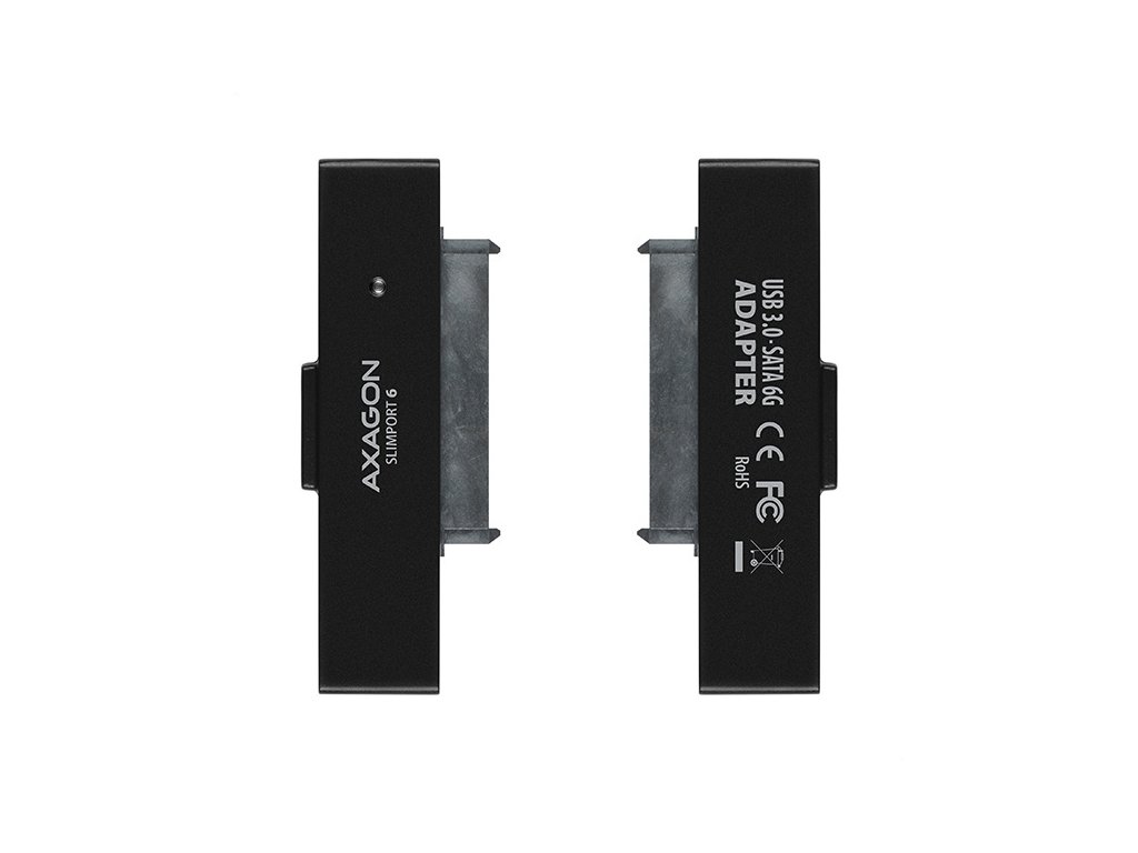 Kompaktní vysokorychlostní adaptér AXAGON ADSA-1S6 SLIMport6 s USB 3.0 a SATA 6G rozhraním určený pro snadné připojení SSD nebo 2.5'' SATA disku. Šikovný pomocník pro rychlé připojení SSD nebo notebookového disku včetně podpory bootování. Podpora UASP podstatně zvyšuje přenosové rychlosti zejména při práci s malými soubory ve frontě. Podpora funkce TRIM pro omezení pozvolné degradace výkonu SSD v čase. Čtení S.M.A.R.T. informací monitorujících kondici připojených disků. Podpora vypínání disku po odebrání zařízení nebo uspání PC. Instalaci zvládne i úplný laik - disk se připojí k adaptéru a adaptér do USB portu počítače, zbytek proběhne automaticky. Minimální rozměry a hmotnost společně s přiloženým pouzdrem pro disk předurčují produkt i pro mobilní použití. Vlastnosti: • Kompatibilní s USB 3.1 gen 1 / USB 3.0, zpětně kompatibilní s USB 2.0. • Podpora přenosových rychlostí 12 / 480 / 5000 Mbit/s (full / high / super speed). • Podpora 2.5'' SATA III/II/I disků všech kapacit. • Vyhovuje Serial ATA 3.1 specifikaci (SATA/600), přenosové rychlosti až 6 Gb/s (600 MB/s). • Vyhovuje Serial ATA 2.0 specifikaci (SATA/300), přenosové rychlosti až 3 Gb/s (300 MB/s). • Vyhovuje Serial ATA 1.0 specifikaci (SATA/150), přenosové rychlosti až 1.5 Gb/s (150 MB/s). • Celková propustnost / přenosová rychlost adaptéru je dána použitým USB 3.0 rozhraním (teor. 5 Gbit/s). • Podpora UASP (USB Attached SCSI Protocol) a BOT (Bulk-Only Transport). • Podpora bootování z SSD/HDD disku připojeného přes USB adaptér. • Podpora HDD Turn Off - vypnutí disku po odebrání zařízení nebo uspání PC. • Možnost připojení zařízení za chodu díky podpoře Hot Plug. • Plná podpora Plug and Play. • Připojení přes USB 3.0 micro B female konektor. • USB 3.0 kabel USB 3.0 type A male / USB 3.0 micro B male délky 10 cm součástí balení. • Napájení po USB 3.0 sběrnici až 900mA z jednoho USB portu zcela dostačuje ve všech případech. • Modrá LED dioda indikující připojení k USB portu počítače (trvalým svitem) a přenos dat (blikáním). Další údaje: • Kompaktní rozměry adaptéru 70 x 21 x 10 mm. • Hmotnost adaptéru pouze 11 g, hmotnost USB kabelu 18 g. • Jednoduché plastové pouzdro pojme 2.5'' disk výšky max. 9.5mm s připojeným USB adaptérem (USB kabel je vyveden otvorem v pouzdře). • Pro tenké 7mm SSD/HDD přibaleny pěnové vycpávky pro lepší upevnění v pouzdře. • Pouzdro může sloužit také pro transport nebo úschovu samotného adaptéru bez disku včetně USB kabelu uvnitř pouzdra. • Rozměry pouzdra 122 x 78 x 19 mm. • Hmotnost pouzdra 40 g. Podporované operační systémy: MS Windows XP / Vista / 7 / 8 / 8.1 / 10 a novější, Windows Server 2003 / 2008 / 2012 / 2016 a novější (podporovány všechny 32- i 64-bitové verze OS Windows), Mac OS X 10.x a vyšší, Linux s jádrem 2.6.x a vyšším. Pozn.: Ovladače jsou součástí podporovaných operačních systémů a nainstalují se zcela automaticky. Žádné jiné ovladače není třeba instalovat a nejsou ani k dispozici. Balení v kartónové krabičce s přehledně uvedenými parametry a postupem instalace obsahuje: • USB 3.0 - SATA adaptér, USB 3.0 kabel délky 10 cm, samolepící pěnové vycpávky pro 7 mm HDD a SSD, plastové pouzdro.Dodatočné parametre