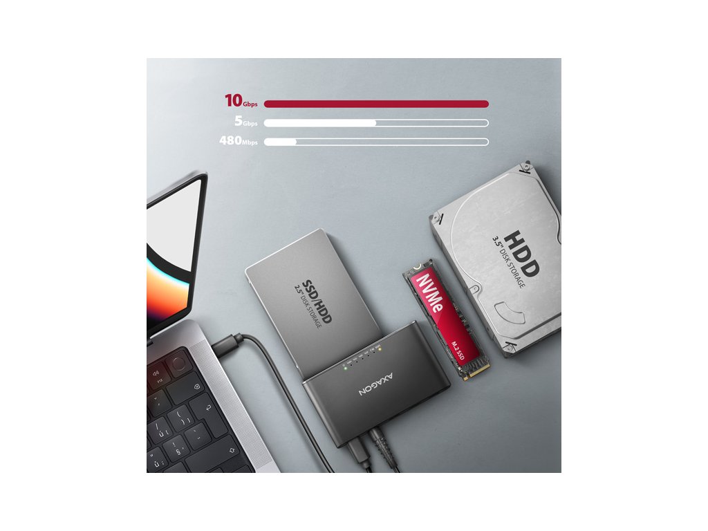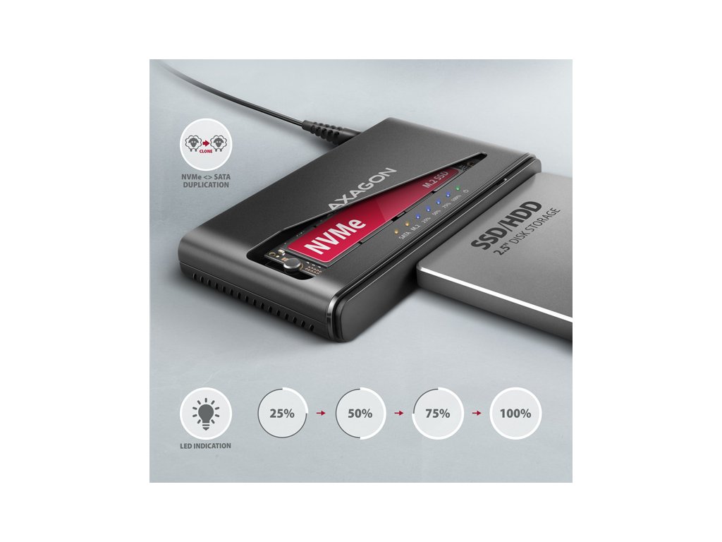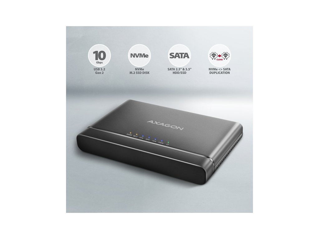 AXAGON ADSA-CC USB-C 10 Gbps - NVMe M.2 SSD & SATA 2.5''/3.5'' SSD/HDD CLONE MASTER 2 ADSA-CC