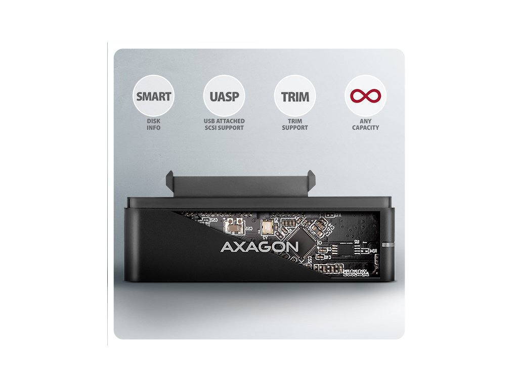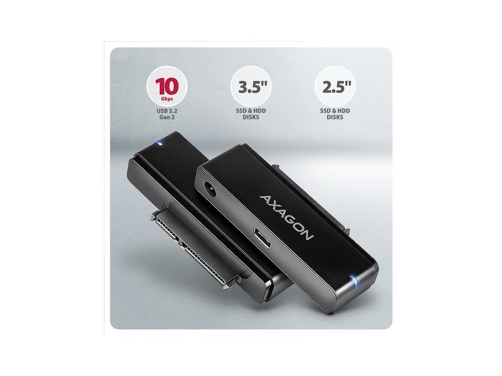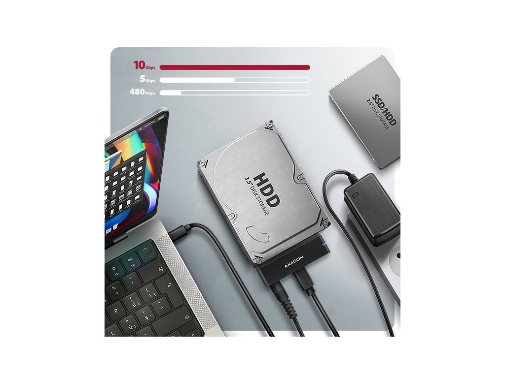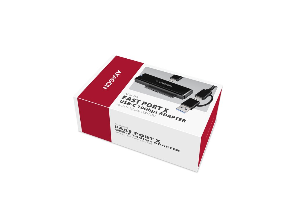 AXAGON ADSA-FPX, USB-C 10Gbps - SATA 6G, 2.5 ''/3.5'' SSD / HDD FAST PORT X adaptér, vr. AC napájače ADSA-FPX