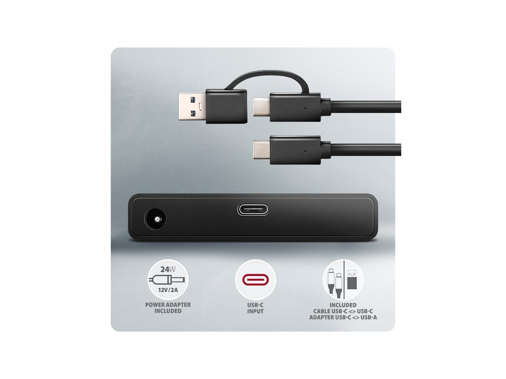 Univerzální adaptér AXAGON ADSA-FPX FAST PORT X s USB-C 10Gbps a SATA 6G rozhraním určený pro snadné připojení 2.5'' / 3.5'' SATA pevného disku nebo SSD k počítači. Díky rychlému USB 3.2 Gen 2 rozhraní s přenosovou rychlostí až 10 Gb/s není rychlost 2.5'' SSD disků omezena a je o přibližně 20 % vyšší než u adaptérů nebo boxů s USB 3.2 Gen 1 (USB 3.0) rozhraním. V balení naleznete 60 cm kabel USB-C <-> USB-C s napevno uchycenou redukcí USB-C -> USB-A. Toto řešení zvyšuje univerzálnost adaptéru, který tak můžete připojit k jakémukoliv USB portu počítače, ať už k oboustrannému USB-C konektoru nebo k tradičnímu USB-A konektoru. Součástí balení je také napájecí adapter 12V/2A (24W) pro napájení 3.5'' pevných disků. Adaptér s 2.5'' SSD/HDD stačí napájet po USB sběrnici, odpadá tak manipulace se síťovým napáječem. Redukce z USB na SATA také podporuje všechny důležité funkce pro bezproblémovou práci s různými typy disků. Jsou to UASP pro rychlejší přenos dat, TRIM pro omezení pozvolné degradace výkonu SSD v čase, S.M.A.R.T. pro monitoring stavu disků, BOOT pro možnost bootování z disků připojených k redukci, Auto Spindown pro automatické uspání disků při delší nečinnosti, Turn Off pro vypnutí disků po odebrání zařízení nebo uspání PC a USB Bus Power pro napájení adaptéru včetně připojených 2.5'' disků z USB sběrnice. Štíhlý a kompaktní adaptér umožňuje snadnou a rychlou výměnu disku bez potřeby montáže, současně díky svým minimálním rozměrům může být kdykoli pohotově po ruce. Matné provedení krytu brání nežádoucím otiskům prstů. Uvedené vlastnosti dělají z adaptéru šikovný a užitečný nástroj pro častou práci s různými druhy disků. Jedná se tak o ideálního pomocníka pro zálohování, migraci, přenos, ukládání a obnovu dat, testování disků apod. Vstup: • USB 10Gbps (USB 3.2 Gen 2), konektor USB-C female. • Kompatibilní s USB 480Mbps, USB 5Gbps, USB 20Gbps, USB4 a Thunderbolt 3/4. Podpora zařízení: • 2.5'' SSD/HDD disky, • 3.5'' HDD disky, • SATA M.2 SSD s redukcí M.2 -> SATA např. AXAGON RSS-M2SD), • rozhraní SATA III - 6 Gb/s (600 MB/s), • max. kapacita disku - všechny bez omezení. Další vlastnosti: • Podpora přenosových rychlostí 10.000 / 5.000 / 480 Mbit/s. • Vyhovuje Serial ATA 3.0 specifikaci (SATA/600), přenosové rychlosti až 6 Gb/s (600 MB/s). • Vyhovuje Serial ATA 2.0 specifikaci (SATA/300), přenosové rychlosti až 3 Gb/s (300 MB/s). • Vyhovuje Serial ATA 1.0 specifikaci (SATA/150), přenosové rychlosti až 1.5 Gb/s (150 MB/s). • Celková propustnost / přenosová rychlost adaptéru je dána použitým SATA diskem (teor. max 6 Gbit/s). • Vyhovuje USB Mass Storage Class specifikaci. • Podpora BOT (Bulk-Only Transport). • Podpora UASP (USB Attached SCSI Protocol) pro rychlejší přenos dat ve Windows 8 a novějších. • Podpora funkce TRIM pro omezení pozvolné degradace výkonu SSD v čase. • Podpora S.M.A.R.T. (Self-Monitoring, Analysis, and Reporting Technology) systém monitorující stav disku. • Podpora bootování z SSD/HDD připojeného přes USB adaptér. • HDD Auto Spindown - automatické uspání disku při nečinnosti trvající 10 minut. • HDD Turn Off - vypnutí disku po odebrání zařízení nebo uspání PC. • Možnost připojení zařízení za chodu díky podpoře Hot Plug. • Plná podpora Plug and Play. • Decentně svítící LED dioda indikující připojení USB napájení (trvalým svitem) a přenos dat (blikáním). • Připojení přes USB 3.2 Gen 2 type C female konektor. • Kabel USB type C male / USB type C male délky 60 cm a redukce USB type C female / USB type A male jsou součástí balení. • Rozměry adaptéru 14 x 72 x 29 mm (V x Š x H). • Hmotnost adaptéru 19g (bez kabelu, bez disku, bez adaptéru). Napájení: • Napájení po USB sběrnici až 900mA z jednoho USB portu zcela dostačuje pro 2.5'' HDD/SSD. • Pro napájení adaptéru s 3.5'' diskem je přibalen kompaktní externí AC/DC adapter 12V - 2A (24W) s přívodním kabelem délky 150 cm. • Rozměry AC adaptéru 65 x 65 x 40 mm (vč. vidlice). • Hmotnost AC adaptéru 102 g (vč. přívodního kabelu). Podporované operační systémy: • Windows 7 / 8.1 / 10 / 11 a novější, macOS, iPadOS, iOS, Linux, Chrome OS a Android. • Windows Server 2008 R2 / 2012 / 2016/ 2019 / 2022 / 2025 a novější. Balení v kartonové krabičce obsahuje: • USB-C 10 Gbps - SATA adaptér, • USB-C <-> USB-C kabel 60 cm + USB-C -> USB-A redukce, • napájecí adapter 100-240V / 12V-2A, • vícejazyčný návod CZ/DE/DK/ENG/ESP/EST/FIN/FR/GR/HR/HU/IT/LT/LV/NL/NOR/PL/PT/RO/SK/SLO/SRB/SWE/TR/UA/ALB/BG/BOS/CN/ARA.Dodatočné parametre
