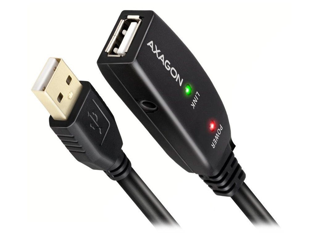 AXAGON ADR-205Aktivní prodlužovací USB 2.0 kabel zesiluje průchozí signál a umožnuje připojit výrazně vzdálenější zařízení než při použití pasivních kabelů. Kabel nevyžaduje přídavné napájení, avšak pro případ připojení zařízení s větším odběrem je k dispozici 3,5 mm konektor přídavného napájení. Samozřejmostí je možnost spojit několik kabelů za sebou.
