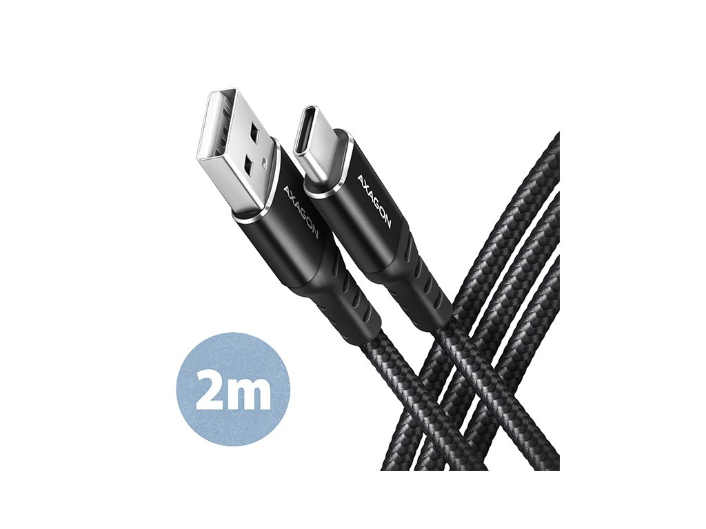 AXAGON BUCM-AM20AB, HQ kábel USB-C <-> USB-A, 2m, USB 2.0, 3A, ALU, oplet, čierny BUCM-AM20AB