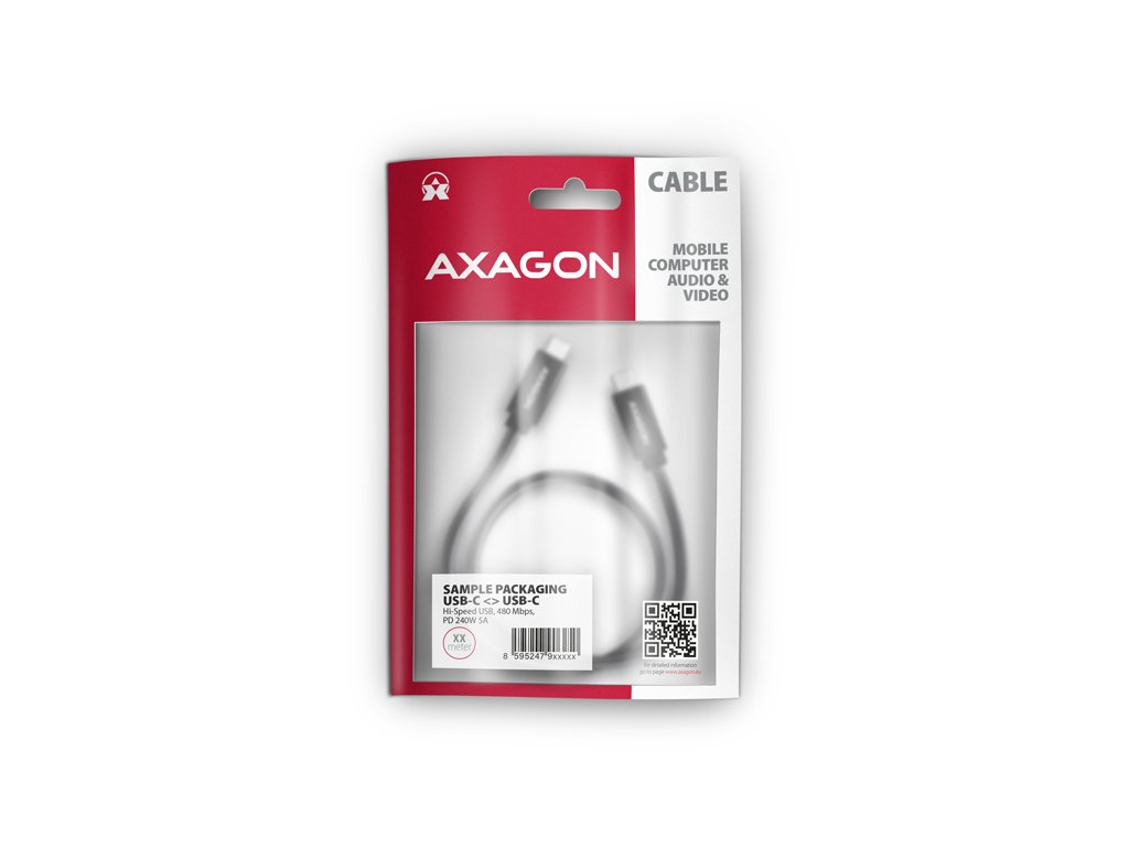 AXAGON BUCM2-CM20AB, CHARGE kábel USB-C <-> USB-C, 2m, Hi-Speed USB, PD 240W 5A, ALU, oplet, čierny BUCM2-CM20AB