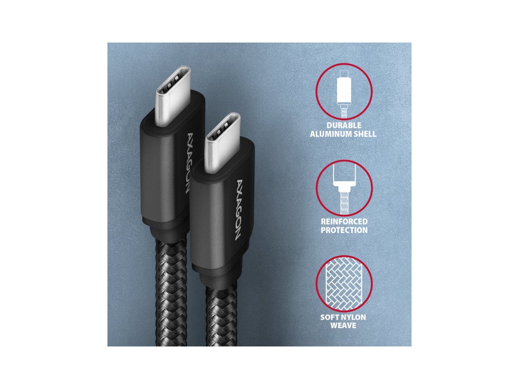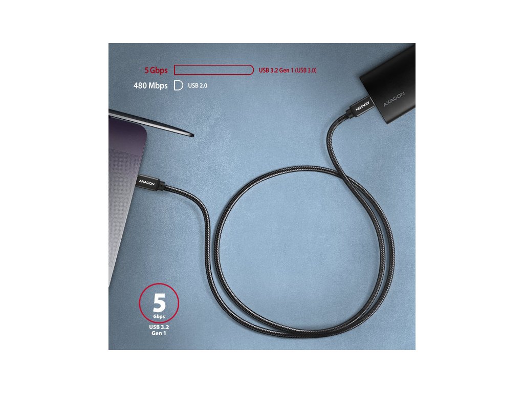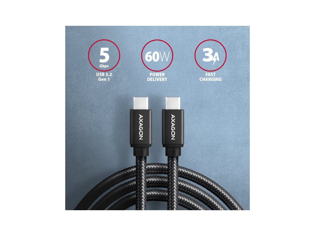 Prémiový propojovací USB-C <-> USB-C datový a nabíjecí AXAGON BUCM3-CM30AB SPEED USB 3.2 Gen 1 kabel s konektory USB-C male na obou koncích. Kabel je navržen pro rychlé datové přenosy a nabíjení notebooků, telefonů, tabletů a dalších mobilních zařízení. Podporuje přenos dat rychlostí až 5 Gb/s a nabíjení proudem až 3A. Kabel je kompatibilní s nabíjecími technologiemi Power Delivery 60W, Quick Charge, Samsung AFC, Huawei FCP, SMART a dalšími. Odolný datový a napájecí kabel s prodlouženou životností je opatřen kovovými koncovkami, konektory s poniklovaným povrchem a pozlacenými kontakty. Vodiče kabelu jsou vyrobené z pocínované bezkyslíkaté mědi. Kvalitní izolace kabelu, vyrobená z flexibilního TPE, zaručuje maximální odolnost, ale zachovává i dostatečnou ohebnost. Konečnou pevnost kabelu dodává nylonový oplet. Bonusem je praktická páska pro snadné sbalení kabelu. Napájecí vodiče 22AWG (nižší číslo = větší průřez a nižší odpor vodiče) garantují rychlé nabíjení telefonů a dalších mobilních zařízení. Kabel podporuje také nabíjení notebooků technologií Power Delivery 60W. Datové vodiče 30AWG spolu s kvalitním stíněním, zajišťují spolehlivý přenos dat. Trojité stínění chrání přenášené signály před nepříznivým rušením. Nylonový oplet v kombinaci s kabelovou průchodkou podstatně zmírňují nebezpečný ohyb kabelu. Životnost kabelu je tak prodloužena na více jak 8000 standardních ohybů. Mechanickou odolnost kabelu zvyšují také hliníkové kryty koncovek. Konektory: • 2x USB-C (M) male / samec. Další vlastnosti: • DATA SYNC & FAST CHARGING - současný přenos dat a dobíjení baterie mobilního zařízení. • SuperSpeed USB - USB 3.2 Gen 1 (dříve USB 3.1 Gen 1 / USB 3.0). • Kompatibilní také s USB 3.2 Gen 2, zpětně kompatibilní s USB 2.0. • Podpora přenosových rychlostí 5.000 / 480 / 12 / 1.5 Mb/s (SuperSpeed / High / Full / Low speed). • Podpora rychlého nabíjení proudem až 3A. • Podporované technologie nabíjení: Power Delivery 2.0/3.0 60W (20V/3A), Qualcomm Quick Charge 2.0 / 3.0 / 4+, Samsung Adaptive Fast Charging, Huawei Fast Charge Protocol, SMART Charging a další. • Kabel obsahuje napájecí vodiče 22AWG, datové vodiče 30AWG. • Vodiče z pocínované bezkyslíkaté mědi pro omezení oxidace, zvýšení vodivosti a čistý signál bez zkreslení. • Dvojnásobné stínění pokovenou fólií, a opletení z pocínované mědi minimalizuje rušení a zabraňuje ztrátě signálu. • Poniklované konektory a pozlacené kontakty zamezují oxidaci a zajišťují spolehlivé spojení. • Vhodný pro notebooky, mobilní telefony a smartphony, tablety, powerbanky a další mobilní zařízení s USB-C konektorem. Další údaje: • délka kabelu 3 m, • vnější průměr kabelu 4.5 mm. Balení v zataveném fóliovém obalu s potiskem a s otvorem pro zavěšení obsahuje: • USB-C M <-> USB-C M kabel černé barvy, • stahovací páska.Dodatočné parametre
