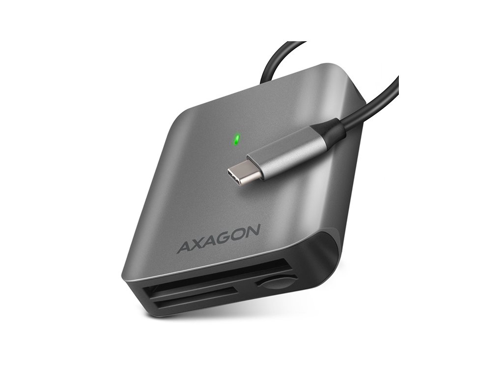 Hliníková 3in1 čtečka paměťových karet AXAGON CRE-S3C SUPERSPEED s USB 3.2 Gen 1 rozhraním podporuje všechny současné verze SD a microSD karet včetně SDXC a microSDXC s kapacitou až 2TB. Dále podporuje CF karty o kapacitě až 128PT. Díky modernímu oboustrannému USB-C konektoru čtečku snadno připojíte k notebooku, telefonu nebo počítači s USB-C konektorem. Díky USB 3.2 Gen 1 (dříve USB 3.0) rozhraní dosahuje čtečka výrazně vyšších přenosových rychlostí oproti čtečkám s USB 2.0 rozhraním. UHS-II karty dosahují rychlosti až 156 MB/s (full-duplex) resp. 312 MB/s (half-duplex), podpora starších USH-I karet (max rychlost 104 MB/s) je samozřejmostí. Čtečka potěší možností současné práce s kartami ve všech slotech a přímého kopírování mezi nimi. Elegantní hliníkové tělo čtečky má jemný povrch omezující tvorbu otisků prstů. Instalaci zvládne každý - čtečku zasunete do USB portu počítače a zbytek proběhne zcela automaticky. Čtečka je ideálním doplňkem pro foto amatéry i profesionály, kteří využívají moderní UHS-II a také CF karty. Čtečka karet - tři sloty s podporou následujících formátů: • slot Micro SD: microSD, microSDHC, microSDXC, TransFlash. • slot SD: SecureDigital, SDHC, SDXC, MultiMedia Card, MMC 4.0, MMC Dual Voltage, MMC mobile, RS-MMC, s adaptérem miniSD, MMC Micro. • slot CF: Compact Flash, CF Type I. Čtečka podporuje tyto specifikace flash karet: • SD 1.0/1.1 (SD - Secure Digital, až 2GB), • SD 2.0 (SDHC - Secure Digital High Capacity, až 32GB), • SD 3.0 (SDXC - Secure Digital eXtended Capacity, až 2TB), • SD 4.0 (SDXC - Secure Digital eXtended Capacity, až 2TB), • MMC a eMMC 3.x/4.0/4.1/4.2/4.3/4.4/4.5/5.0 (8-bit) • CF 6.0 (UDMA 0 - UDMA 7, až 128PB) • Podpora SD 3.01 a SD Jukebox aplikace (CPRM funkce). • Podpora Ultra High Speed bus UHS-II (FD156/HD312) rychlost až 156 MB/s Full Duplex, resp. 312 MB/s Half Duplex. • Podpora Ultra High Speed bus UHS-I (SDR12/SDR25/SDR50/DDR50/SDR104) rychlost až 104 MB/s. • Podpora hardware ECC (Error Correction Code) funkce a CRC (Cyclic Redundancy Check) funkce. • 3 LUN - v souborových manažerech se čtečka indikuje jako tři diskové jednotky. • Podpora souborových formátů FAT 12/16/32, NTFS, exFAT (FAT 64). Další vlastnosti: • Rozhraní SuperSpeed USB - USB 3.2 Gen 1 (dříve USB 3.1 Gen 1 / USB 3.0). • Kompatibilní také s USB 3.2 Gen 2, zpětně kompatibilní s USB 2.0 a USB 1.1. • Podpora přenosových rychlostí 5000 / 480 / 12 Mb/s (Superspeed / High / Full speed). • Plná podpora Plug and Play a Hot Swap. • Připojení přes USB konektor typu C male. • Podpora připojení telefonů s USB-C konektorem. • Napájení čtečky po USB sběrnici (bus-power). • Zelená LED dioda indikující vložení karty (trvalým svitem) a přenos dat (blikáním). • Rozměry 64 x 60 x 15 mm, délka napevno uchyceného kabelu 15cm. • Hmotnost 53 g. Podporované operační systémy: • MS Windows 7 / 8 / 8.1 / 10 / 11 a novější, Windows Server 2008 / 2012 / 2016 / 2019 / 2022 a novější (podporovány všechny 32- i 64-bitové verze OS Windows), Mac OS X 10.x a vyšší, Linux s jádrem 2.4.x a vyšším, Android všechny verze. • Pozn.: Ovladače jsou součástí podporovaných operačních systémů a nainstalují se zcela automaticky. Žádné jiné ovladače není třeba instalovat a nejsou ani k dispozici. Balení v kartonové krabičce s otvorem pro zavěšení obsahuje: • SuperSpeed USB čtečku karet, • tištěný instalační návod CZ/DE/DK/ENG/ESP/FIN/FR/GR/HR/HU/IT/NL/PL/PT/RO/RU/SK/SWE/BG/CN/TR/ARA.Dodatočné parametre