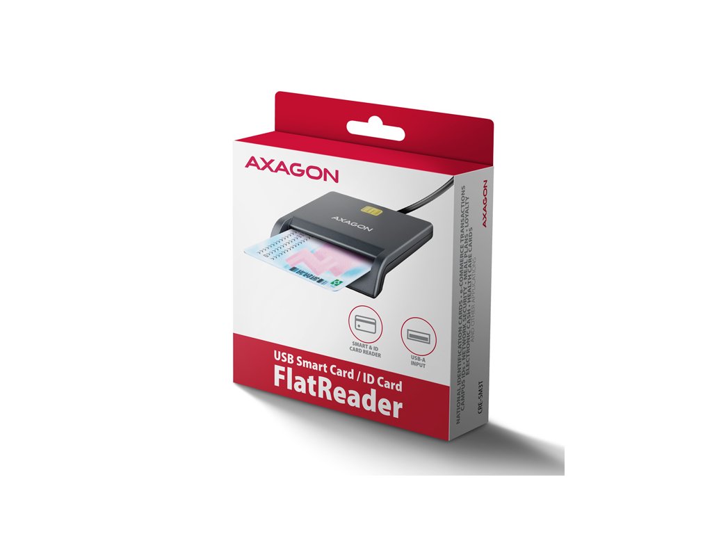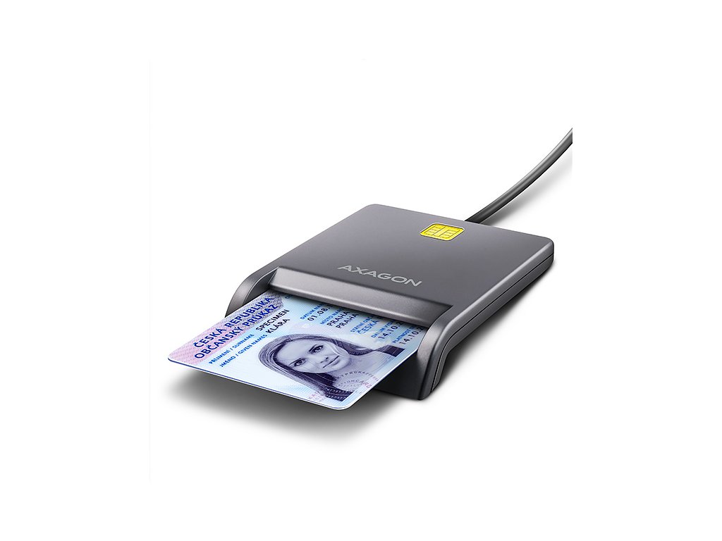 Kompaktní stolní čtečka Smart card / ID card AXAGON CRE-SM3T FlatReader s USB 2.0 rozhraním. Je vhodná zejména jako čtečka občanských průkazů pro použití s počítači, které disponují USB vstupem. Nejrozšířenější USB-A konektor zajistí připojení jak k novému, tak i staršímu počítači. Díky funkci Plug&Play se čtečka ihned zprovozní bez nutnosti instalace ovladačů. Pro další práci s vloženou kartou stačí již jen nainstalovat vhodnou aplikaci. Čtečka je plně kompatibilní s aplikací eObčanka (CZ) nebo eID klient (SK). Card reader podporuje všechny běžné formáty kontaktních Smart karet, čipových karet a dalších karet včetně kontaktních bankovních platebních karet nebo kontaktních elektronických občanských průkazů *. Kompatibilita se všemi běžnými operačními systémy jako Windows, Linux, macOS a Android umožňuje široké využití jak na počítačích a noteboocích, tak na smartphonech a tabletech. Chytrá LED indikace svítí jen krátkou chvíli po změně aktivity, poté zhasne a neruší uživatele zbytečným svitem. Kompaktní design, kvalitní provedení, protiskluzová podložka a dostatečně dlouhý kabel zajišťují snadné a bezproblémové použití. Vstup: • USB 2.0, protokol CCID. • Zpětně kompatibilní s USB 1.1. • Připojení k počítači přes USB 2.0 konektor typu A male. • Pro připojení k telefonu nebo tabletu s USB-C konektorem doporučujeme USB-C -> USB-A redukci např. AXAGON RUCM-AFAC. Pro připojení k telefonu s micro USB konektorem doporučujeme OTG redukci micro USB -> USB-A. Čtečka karet: • 1 slot podporuje karty ATM / CAC / ID / IC / SIS. • Podpora kontaktních Smart karet splňujících ISO 7816, třídy A, B a C (5V, 3V a 1.8V). • Podpora standardů ISO 7816, EMV 4.1 (EMV 2000 level 1). • Podporované protokoly T=0 and T=1, I2C, SLE 4432/42 (S=10), SLE 4418/28 (S=9). • Podpora PC Smart Card standardu PC/SC 2.0. • Podpora Microsoft Smart Card for Windows. • Podpora I2C karet SLE4418, SLE4428, SLE4432, SLE4442, SLE4436, SLE5536, SLE6636, AT88SC1608, AT45D041. • Vyhovuje Microsoft WHQL USB Smart Card Reader. • Vyhovuje požadavkům standardu FIPS 201. Další vlastnosti: • Kompatibilní s ovladačem Microsoft USB-CCID. • Podpora Plug and Play. • Podpora úsporného režimu, automatické přepnutí do úsporného režimu. • Napájení čtečky po USB sběrnici (bus-power). • LED indikující vložení karty (trvalým svitem) a přenos dat (blikáním). • LED indikace svítí jen krátkou chvíli po změně aktivity, poté zhasne a neruší zbytečným svitem. • Gumová podložka pro omezení samovolného pohybu po stole. • Rozměry 89 x 65 x 15 mm, délka kabelu 1.3 m. • Hmotnost 56 g. Podporované operační systémy: • Windows 7 / 8.1 / 10 / 11 a novější, macOS, Linux a Android. • pro práci se Smart kartou je nutné nainstalovat do připojeného zařízení vhodnou aplikaci, např.: eObčanka (CZ) nebo eID klient (SK). Pozn.: Čtečka podporuje pouze kontaktní karty, které mají na povrchu viditelné kontakty. Karty bez kontaktů, známé jako RFID, nelze ve čtečce použít. Balení v kartonové krabičce s otvorem pro zavěšení obsahuje: • USB čtečku Smart karet s kabelem napevno délky 1.3 m, • vícejazyčný návod CZ/DE/DK/ENG/ESP/FIN/FR/GR/HR/HU/IT/NL/PL/PT/RO/SK/SWE/TR/UA/BG/CN/ARA.Dodatočné parametre