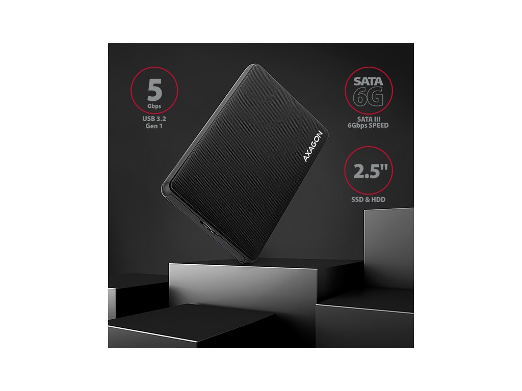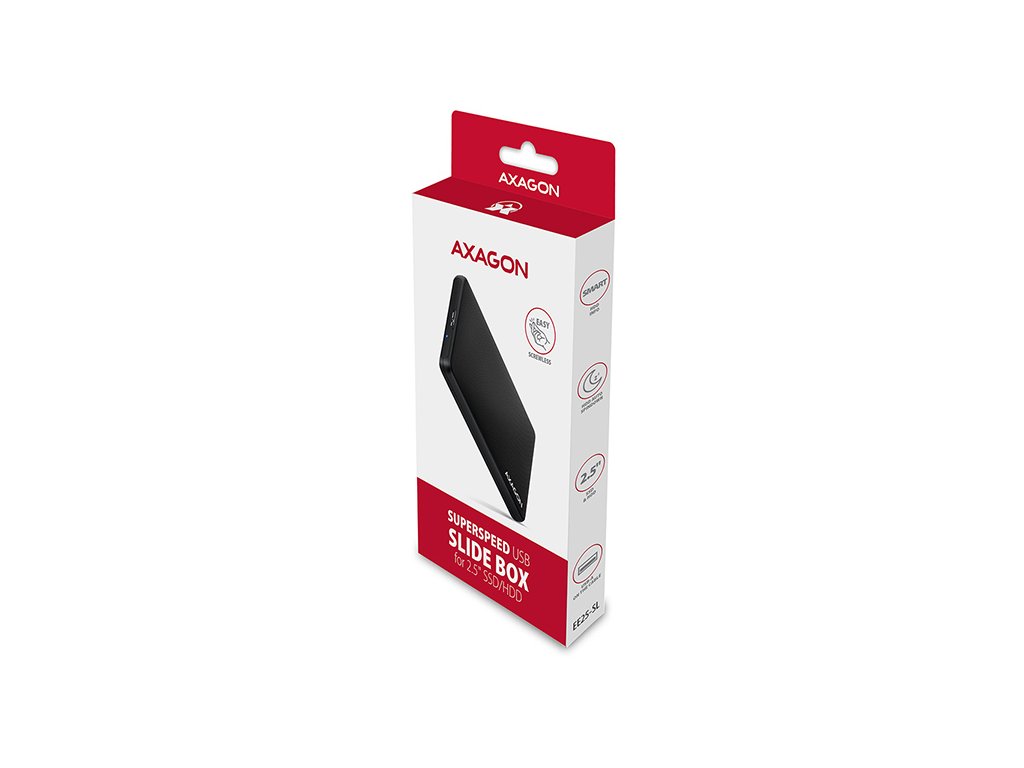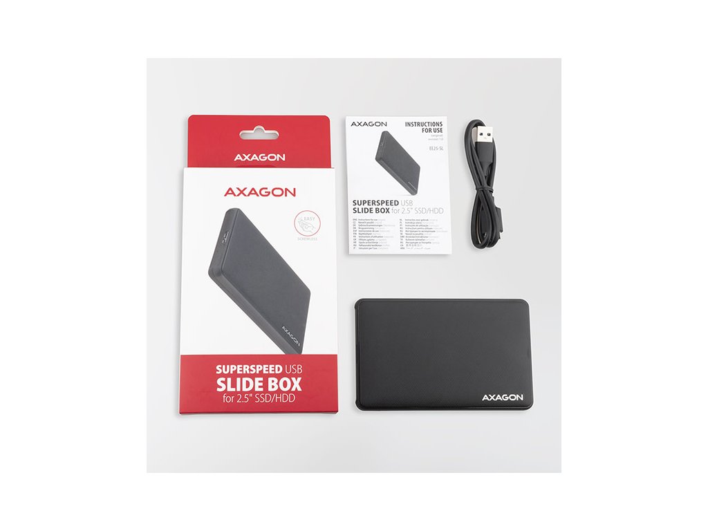 AXAGON EE25-SL, USB 3.2 Gen 1 - SATA 6G, 2.5'' SLIDE box, bezskrutkový, čierny EE25-SL