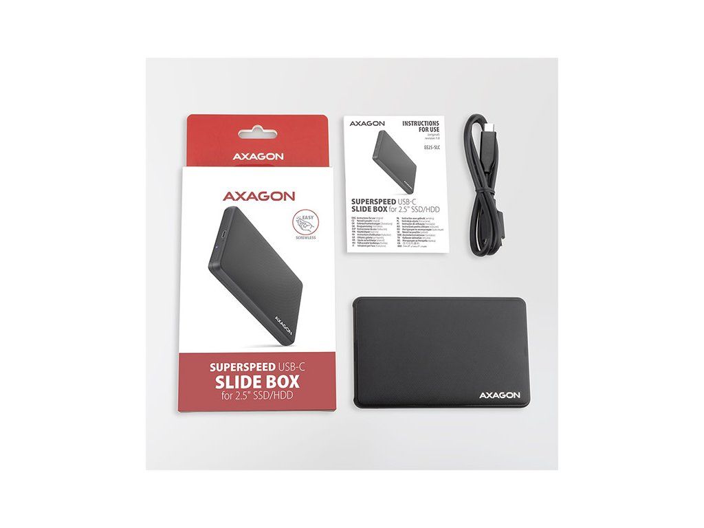 AXAGON EE25-SLC, USB-C 3.2 Gen 1 - SATA 6G 2.5'' SLIDE box, bezskrutkový, čierny EE25-SLC