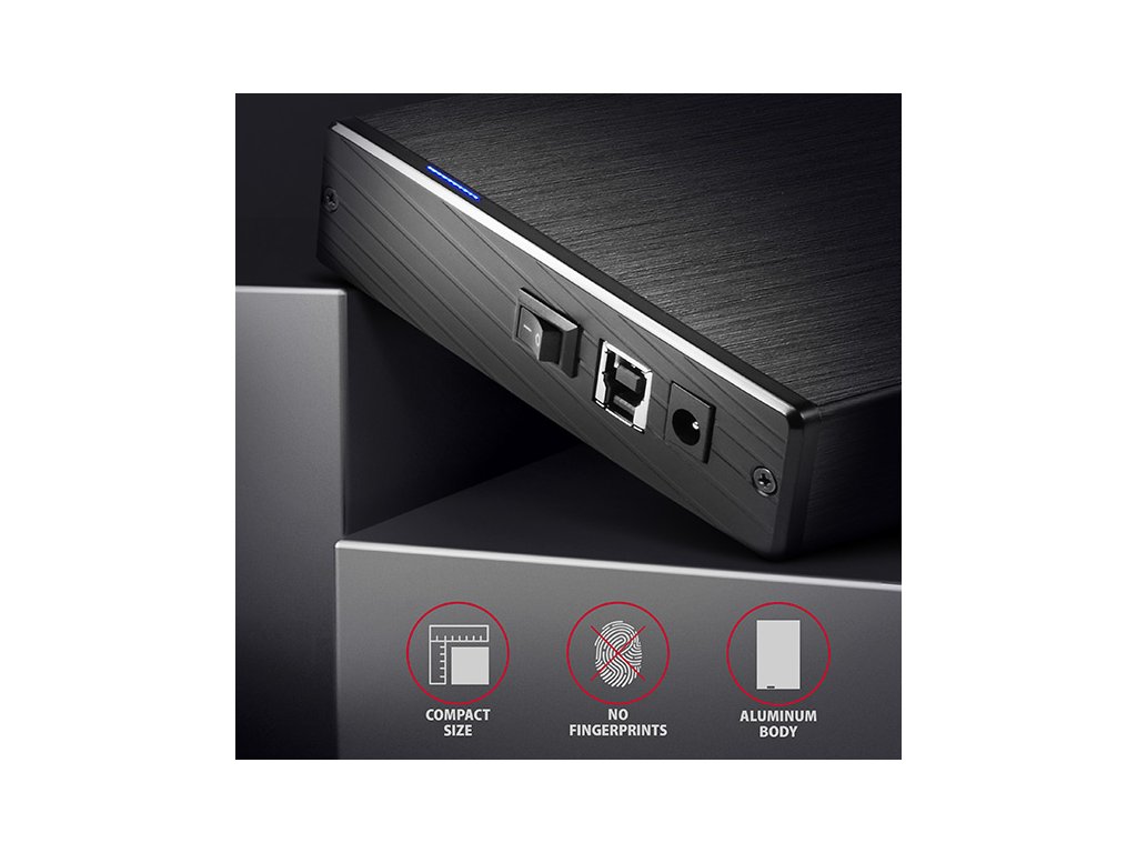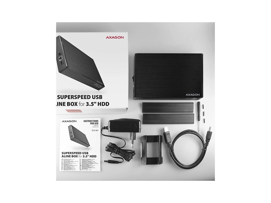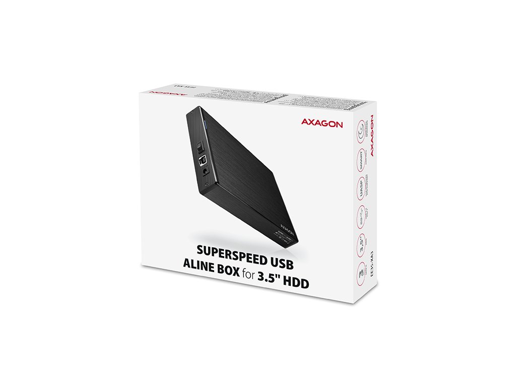 Kompaktný hliníkový externý box AXAGON EE35-XA3 ALINEbox s vysokorýchlostným USB 3.2 Gen 1 (USB 3.0) rozhraním určený pre 3.5" SATA disky.