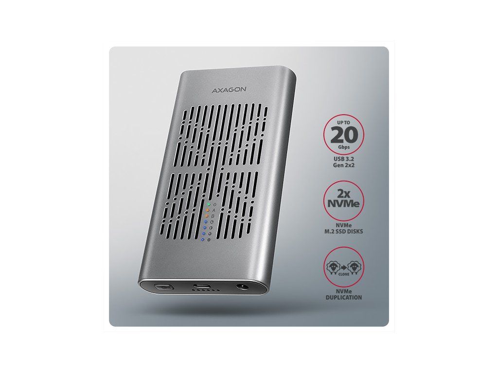 AXAGON EEM2-20GD, USB-C 20Gbps externý box pre dva M.2 NVMe SSD s funkciou klonovania EEM2-20GD