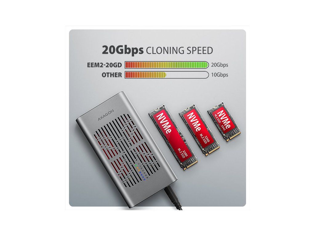 AXAGON EEM2-20GD, USB-C 20Gbps externý box pre dvoch M.2 NVMe SSD s funkciou klonovania EEM2-20GD