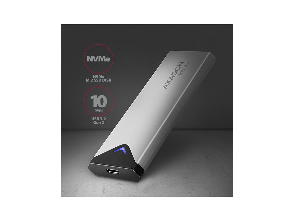 AXAGON EEM2-UG2, 10Gbps USB-C - M.2 NVMe SSD ARROW box, strieborný EEM2-UG2