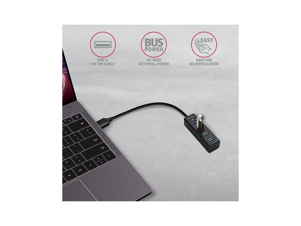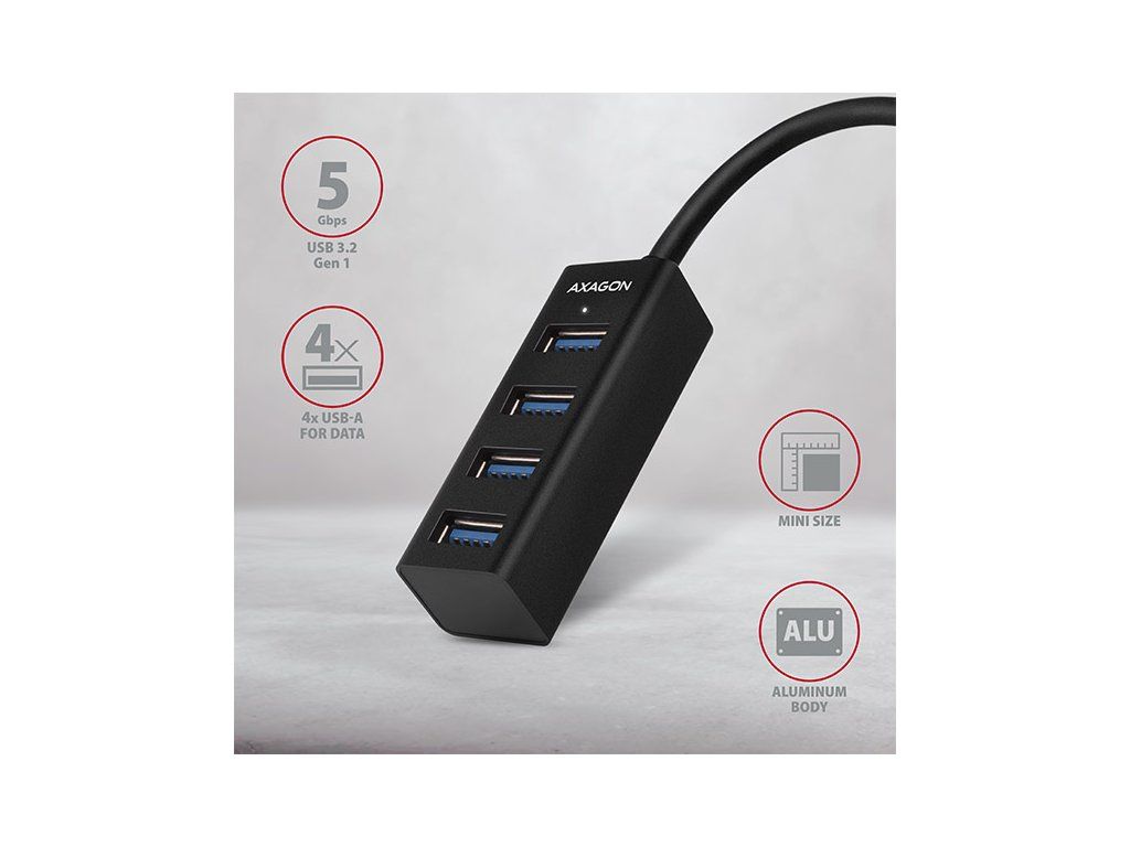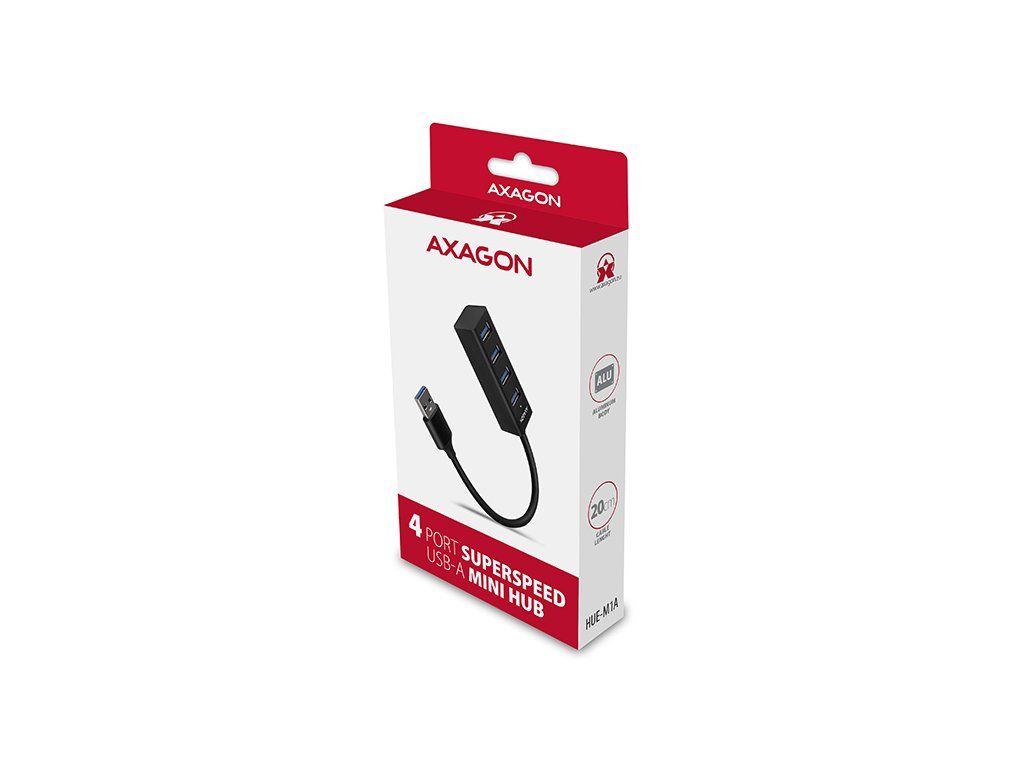 AXAGON HUE-M1A, 4x USB 3.2 Gen 1 MINI hub, kovový, kábel USB-A 20cm HUE-M1A