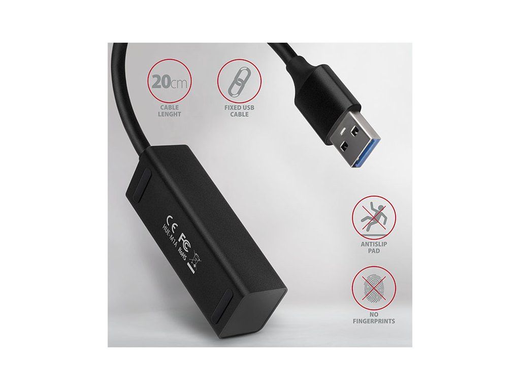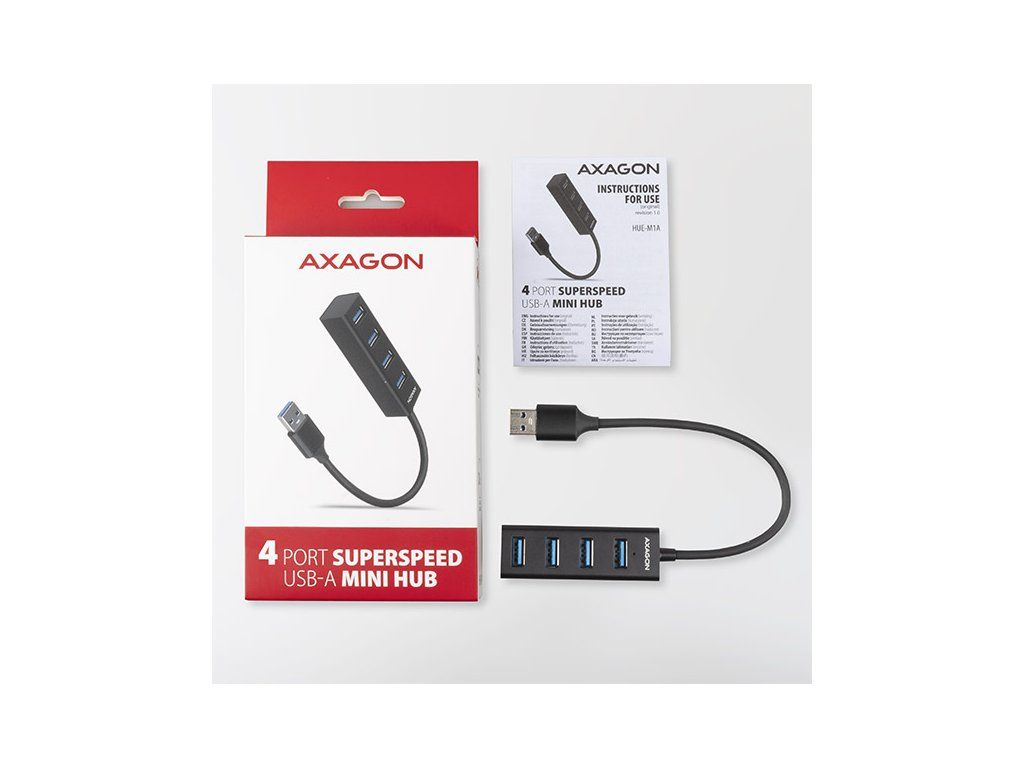 Miniaturní kovový USB 3.2 Gen 1 (USB 3.0) hub AXAGON HUE-M1A snadno a rychle připojí k notebooku nebo počítači až čtyři USB zařízení současně. Kovové tělo hubu je vyrobeno z hliníku a zajišťuje tak dokonalou mechanickou ochranu pro časté přenášení. Elegantní, jemně strukturovaný povrch brání nežádoucím otiskům. Gumové nožky zabraňují klouzání hubu po stole. Napevno uchycený USB kabel délky 20 cm je ideální pro uživatele mobilních zařízení. Tento malý cestovní hub také zvládne trvalé připojení několika externích disků. Díky rychlému USB 3.2 Gen 1 rozhraní je přenosová rychlost až 5Gb/s. Hub dále umožní nabíjení telefonů a tabletů proudem až 1,5A/5V, z hubu tak snadno nabijete např. Android smartphone, Apple iPhone, Apple iPad apod. USB hub je ideálním doplňkem pro ultrabooky s malým počtem USB-A portů. Rozbočovač se nezalekne ani připojení k telefonům pomocí vhodné redukce OTG nebo USB-A > USB-C. K telefonu nebo tabletu tak připojíte například flash disk, klávesnici a myš. Vstup: • 1x USB 3.2 Gen 1 / SuperSpeed USB port, konektor USB-A male. • Zpětně kompatibilní s USB 3.1 Gen 1 / USB 3.0 / USB 2.0 a USB 1.1. • Připojovací USB konektor typu A male (samec) umístěn na napevno uchyceném 20 cm kabelu. Výstupy: • 4x SuperSpeed USB port, konektory USB-A female. • Podpora přenosových rychlostí 5.000 / 480 / 12 / 1.5 Mb/s (SuperSpeed / High / Full / Low speed). • Celková propustnost / přenosová rychlost je dána použitým USB 3.2 Gen 1 rozhraním (teoreticky 5 Gbit/s). • USB hub zvládne připojení několika externích disků současně. Vlastnosti: • Možnost připojení zařízení za chodu díky podpoře Hot Plug. • Plná podpora Plug and Play. • Podpora úsporného režimu. • Kvalitní stíněný kabel zaručuje vysokou rychlost komunikace a minimální nežádoucí interference. • Bílá LED indikuje připojení hubu k počítači. • Napájení po USB sběrnici (USB bus power). • Rozměry 70 x 24 x 18 mm. • Hmotnost 35 g (vč. kabelu). • Délka USB kabelu 20 cm. Napájení/Nabíjení: • Napájení po USB sběrnici je dostatečné pro připojení USB zařízení s nízkým odběrem (myš, klávesnice, čtečka karet, flash disk apod.) nebo vlastním napájením (tiskárna, skener, 3.5'' externí disk) do všech čtyř portů. • USB hub také zvládne trvalé připojení několika externích disků současně. • Nabíjení mobilních zařízení (včetně iPad) proudem až 1.5A v každém z portů hubu. Celkový nabíjecí proud (který se dělí na porty) dosahuje až 2,8A při napětí 5V (záleží na možnostech USB portu počítače). Podporované operační systémy: • MS Windows XP / Vista / 7 / 8 / 8.1 / 10 a novější, Windows Server 2003 / 2008 / 2012 / 2016 a novější (podporovány všechny 32- i 64-bitové verze OS Windows), Mac OS X 10.4.x a vyšší, Linux s jádrem 2.6.x a vyšším, Android většina verzí. Pozn.: Ovladače jsou součástí podporovaných operačních systémů a nainstalují se zcela automaticky. Žádné jiné ovladače není třeba instalovat a nejsou ani k dispozici. Balení v kartonové krabičce s otvorem pro zavěšení obsahuje: • SuperSpeed USB rozbočovač s kabelem napevno délky 20 cm, • multijazyčný manuál CZ/DE/DK/ENG/ESP/FIN/FR/GR/HR/HU/IT/NL/PL/PT/RO/RU/SK/SWE/BG/CN/TR/ARA.Diskusia