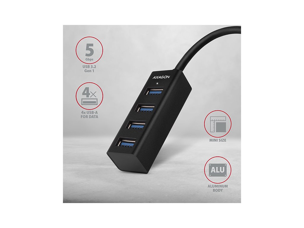 AXAGON HUE-M1C, 4x USB 3.2 Gen 1 MINI hub, kovový, kábel USB-C 20cm HUE-M1C