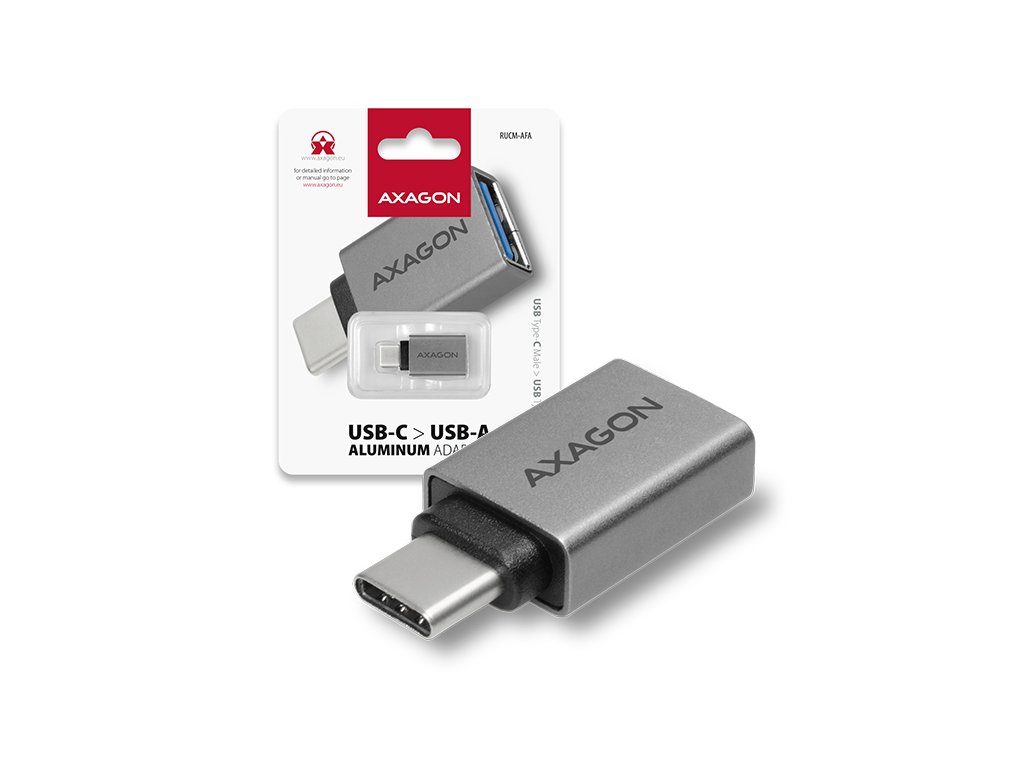 AXAGON RUCM-AFA, redukcia USB-C (M) -> USB-A (F), USB 3.2 Gen 2, 3A, ALU RUCM-AFA