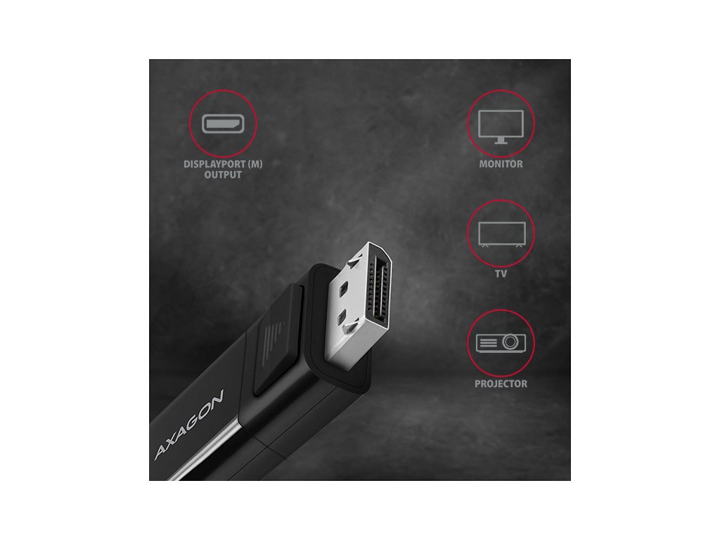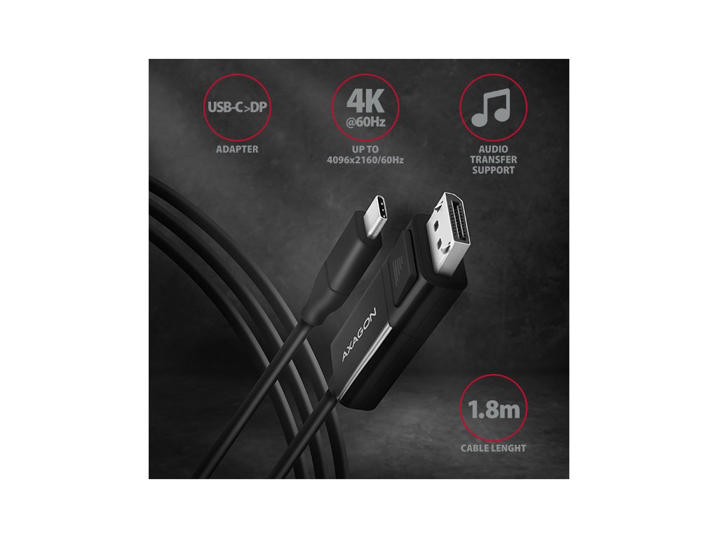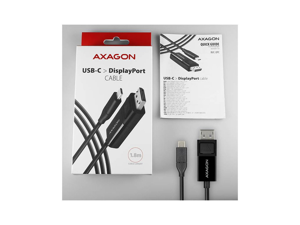 AXAGON RVC-DPC, USB-C -> DisplayPort redukcia / kábel 1.8m, 4K/60Hz RVC-DPC