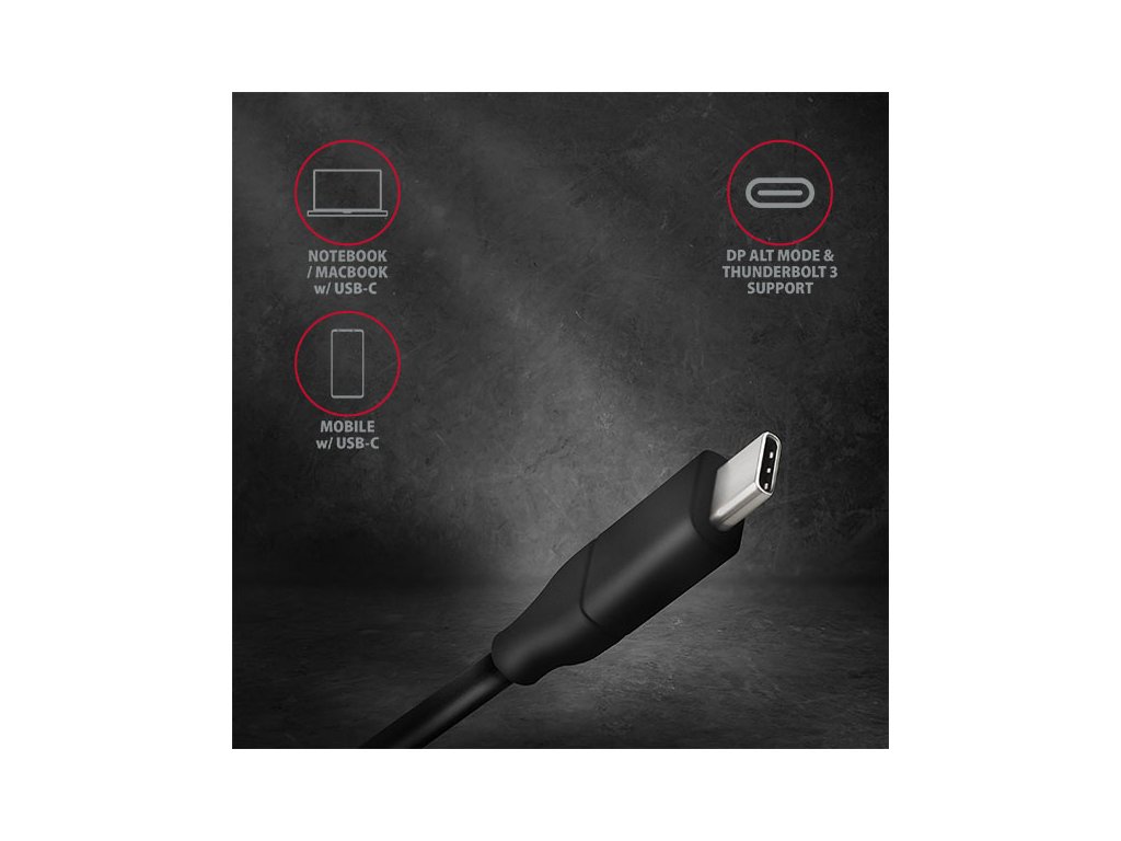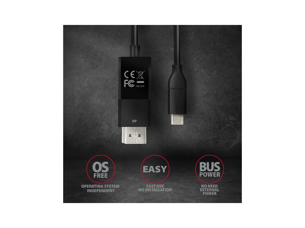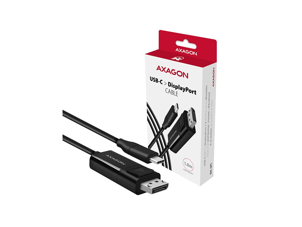 Aktivní USB-C -> DisplayPort kabel - redukce AXAGON RVC-DPC pro připojení DisplayPort monitoru/TV/projektoru k notebooku nebo telefonu pomocí USB-C konektoru. Hardwarový převodník bez potřeby jakékoliv instalace zajistí kvalitní obraz až do rozlišení 4K/60Hz Ultra HD. Přenos obrazu a zvuku z počítače, notebooku, telefonu nebo Apple MacBooku bude nyní hračkou. Kompaktní rozměry zajistí snadné použití i v místech s nedostatkem prostoru. Rozměry převodníku jsou téměř shodné s rozměry konektorů standardního kabelu. Jedná se o ideální řešení - nepotřebujete DisplayPort kabel a redukci, s tímto aktivním kabelem je vše integrováno do jednoho celku. Kabel je pouze jednosměrný, tj. USB-C na DisplayPort, ne naopak. Pro správné fungování adaptéru je nutný USB-C port s podporou DisplayPort Alternate Mode (DP Alt Mode) nebo zařízení s Thunderbolt 3 portem. Vstup: • USB-C • konektor USB type C (M) male (samec) Výstup: • DisplayPort 1.2 • konektor DP se západkou (M) male (samec) • tlačítko ovládání západky konektoru Podporovaná rozlišení: • max. 4096 x 2160 (19:10) @60Hz DCI 4K • 3840 x 2160 (16:9) @60Hz UHD-1 4K (UHDTV) • 3840 x 1600 (21:9) UW 4K (Ultrawide 1600p) • 3840 x 1200 (32:10) 29:9 4K (Super ultrawide 1200p) • 3840 x 1080 (32:9) 32:9 4K (Super ultrawide 1080p) • 3440 x 1440 (21:9) UWQHD (Ultrawide 1440p) • 2560 x 2048 (5:4) QSXGA • 2560 x 1920 (4:3) • 2560 x 1600 (16:10) WQXGA • 2560 x 1440 (16:9) QHD • 2560 x 1080 (21:9) UWFHD (Ultrawide 1080p) • 2048 x 1536 (4:3) QXGA • 2048 x 1152 (16:9) QWXGA • 1920 x 1440 (4:3) • 1920 x 1200 (16:10) WUXGA • 1920 x 1080 (16:9) Full HD/1080p • 1856 x 1392 (4:3) • 1792 x 1344 (4:3) • 1680 x 1050 (16:10) WSXGA+ • 1600 x 1200 (4:3) UXGA • 1600 x 900 (16:9) HD+ • 1536 x 864 (16:9) • 1440 x 900 (16:10) WXGA+ • 1400 x 1050 (4:3) SXGA+ • 1366 x 768 (16:9) HD • 1360 x 768 (16:9) HD • 1280 x 1024 (5:4) SXGA • 1280 x 960 (4:3) SXGA- • 1280 x 800 (16:10) WXGA • 1280 x 768 (5:3) WXGA • 1280 x 720 (16:9) HD/WXGA/720p • 1280 x 600 • 1152 x 864 (4:3) XGA+ • 1024 x 768 (4:3) XGA • 800 x 600 (4:3) SVGA rozlišení je závislé na parametrech monitoru/TV/projektoru a grafického adaptéru. Další vlastnosti: • Podporované módy: zrcadlení plochy primárního monitoru (default nastavení), rozšíření plochy primárního monitoru. • Podpora HPD (Hot-Plug-Detect) - komunikační sekvence řídící připojování/odpojování zařízení za chodu. • Podpora přenosu až 8-kanálového zvuku - 96kHz při 24-bitech. • Vyhovuje specifikaci USB Type-C Cable and Connector Specification Revision 1.1. • Vyhovuje specifikaci VESA DisplayPort Alt Mode on USB Type-C Standard Version 1.0. • Vyhovuje specifikaci USB Device Class Definition for Billboard Devices Revision 1.0. • Podpora HDCP 2.2 (High-bandwidth Digital Content Protection) - mechanismus používaný pro ochranu digitálního obsahu. • Podpora power saving módů s uspáváním řízeným zdrojovým zařízením (PC) i zobrazovacím zařízením (monitor/TV). • Napájení z USB-C - není potřeba žádné externí napájení. • Rozměry těla adaptéru 47 x 22 x 10 mm. • Celková délka kabelu vč. konektorů 185 cm. • Hmotnost pouze 71g. • Provozní teplota: 0 ~ 45°C. • Skladovací teplota: -10 ~ 70°C. Podporované operační systémy: • Microsoft Windows 10, macOS, Android a Chrome OS - aktualizované. • Kompatibilita je závislá na používaném operačním systému a podpoře od výrobce zařízení. Balení v kartonové krabičce obsahuje: • USB-C > DP kabel délky 1.8m, • tištěný multijazyčný manuál CZ/DE/DK/ENG/ESP/FIN/FR/GR/HR/HU/IT/NL/PL/PT/RO/RU/SK/SWE/BG/CN/TR/ARA.Buďte prvý, kto napíše príspevok k tejto položke.
