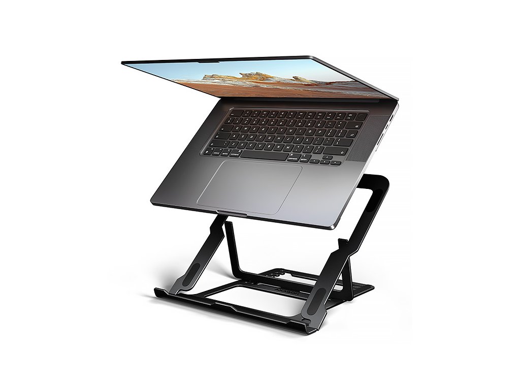 AXAGON STND-LAB je stojan na notebook či tablet, který zajišťuje pohodlí a zlepšuje ergonomii při práci. Je ideální pro zařízení s úhlopříčkou od 10'' do 17.3'' a umožňuje nastavení až osmi poloh. Snadno tak najdete ideální sklon stojanu pro maximální uvolnění vašich krčních a zádových svalů. Užijte si komfortní pracovní prostředí s kompaktním a přenosným stojanem, který se dokonale přizpůsobí vašim potřebám, ať už pracujete doma, v kanceláři, nebo na cestách. Podstavec je vyroben z hliníkových odlitků garantujících dlouhou životnost a spolehlivost. Díky protiskluzové úpravě se nemusíte obávat nežádoucích pohybů – vaše zařízení zůstane pevně na svém místě, a to bez poškození povrchu notebooku či podložky. Tyto pečlivě navržené vlastnosti zaručují perfektní stabilitu pro váš notebook, tablet nebo dokonce oblíbenou knihu, což vám poskytne klid a pohodlí při každodenním používání. Velkou výhodou je možnost nastavení až osmi poloh. Díky tomu můžete notebook zvednout do výšky od 91 do 150 mm. Tím získáte další pracovní plochu ve správné úrovni očí, což výrazně zlepšuje ergonomii a pohodlí při práci, a zároveň zvyšuje vaši produktivitu. Stojan lze snadno složit do kompaktních rozměrů, což umožňuje pohodlné přenášení kamkoli potřebujete. Jeho elegantní design v černé barvě nejen stylově doplní váš pracovní stůl, ale také přináší praktické funkce, které oceníte při každodenním používání. Provedení zajišťuje ideální odvod tepla z vašeho notebooku, čímž zvyšují jeho výkon a životnost. Vlastnosti: • Lehká a pevná kovová konstrukce. • Protiskluzová úprava, která zároveň chrání zařízení od poškrábání. • Vhodný pro 10''–17.3'' notebooky nebo jiná zařízení. • Osm nastavitelných pozic. • Nastavitelná výška 91–150 mm. • Nosnost dimenzována pro všechny typy notebooků: max. 20 kg. • Skladný a lehce složitelný. • Držák notebooku umožňuje lepší odvod tepla. • Rozměry: 220 × 230 × 15 mm (Š × H × V). • Hmotnost: 312 g. Balení v kartonové krabičce obsahuje: • Stojan na notebook/tablet, • černá verze provedení.Dodatočné parametre