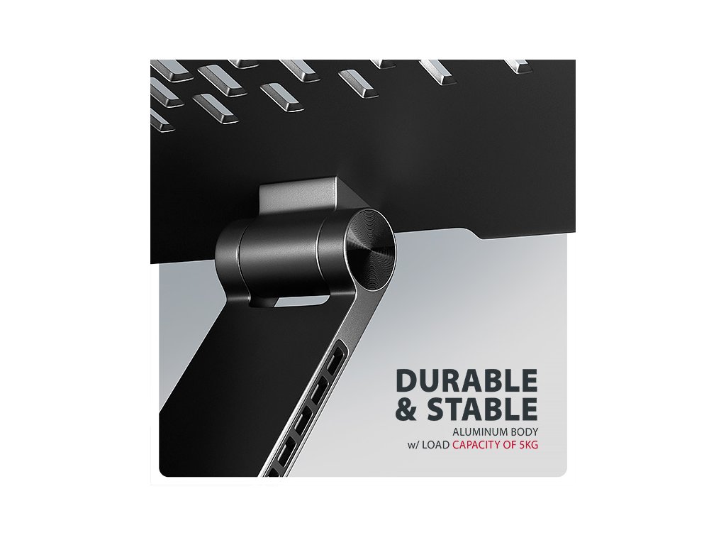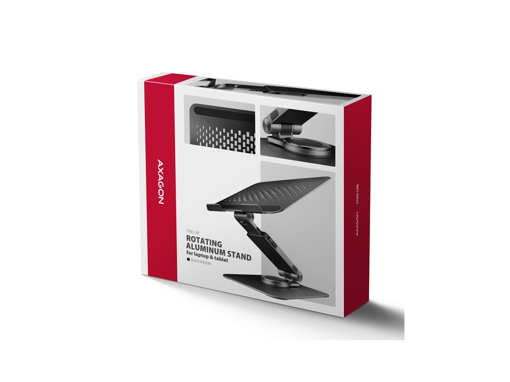 AXAGON STND-LRB, hliníkový stojan pre notebooky 10''-17.3'' s nast. výškou, uhlom a 360 ° rotáciou, čierny STND-LRB