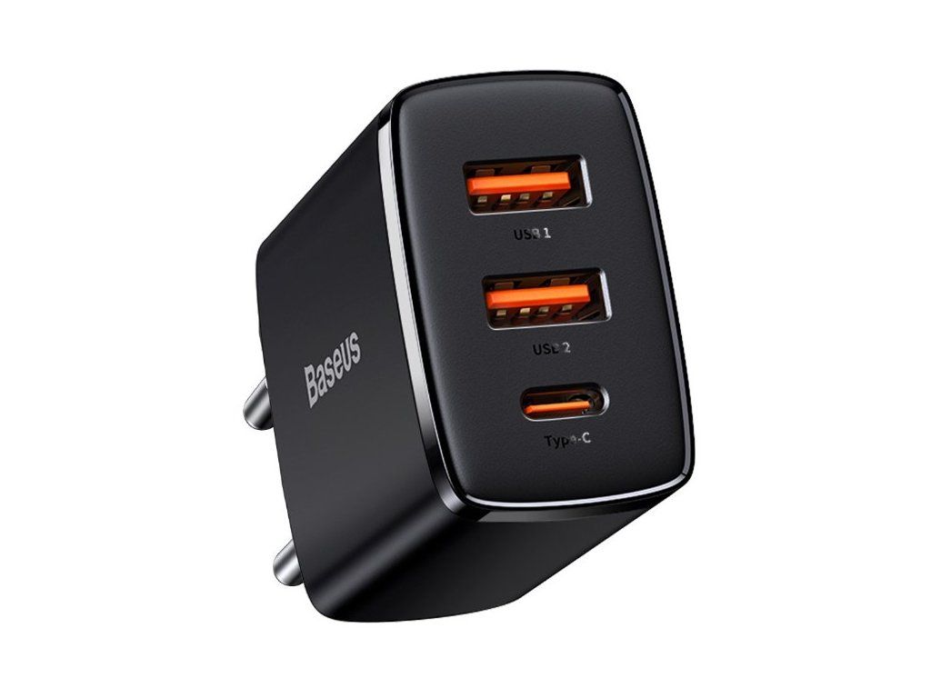 Baseus Compact Quick nabíječka se třemi výstupy. USB-C a dvěma USB. Kompaktní rozměry a vysoký výkon až 30W předurčují tuto nabíječku jako ideálního společníka domů, do kanceláře, ale také díky minimalistickým rozměrům i na cesty. Nabíjet můžete až tři zařízení současně 5V/3A nebo využít USB-C port na maximum a získat tak až 30W. Samozřejmě neschází zabezpečení proti zkratu, přebití nebo přehřátí. Vlastnosti - Model No.: CCCP30UE - Vstup AC 100-240V~, 50/60Hz, 0.8A Max. - Výstup USB-C 5V/3A, 9V/3A, 12V/2.5A, 15V/2A, 20V/1.5A - Výstup USB 1/USB 2 5V/3A, 9V/2A, 12V/1.5A - společný vstup pro obě USB 5V/3A - společný výstup pro USB-C+ 1x USB 5V/3A - společný USB-C + USB 1 + USB 2 5V/3A - Rozměry 52 x 46 x 28mmDodatočné parametre