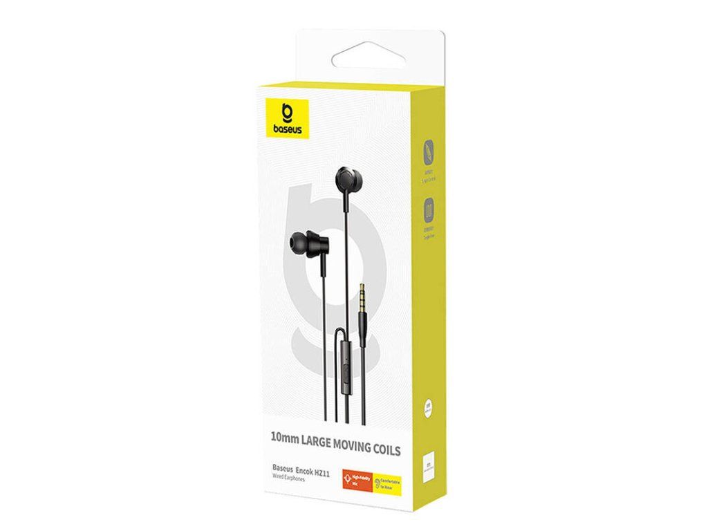 Baseus Encok HZ11 kabelová sluchátka * ovládání na kabelu Technické parametry Měnič: 10mm Frekvenční rozsah: 20Hz-20kHz Mikrofon: ano Rozhraní: konektor 3,5mm Typ připojení: drátové Délka kabelu: 1,1m Barva: černá Požadavky na systém: 3,5mm audio konektorDodatočné parametre