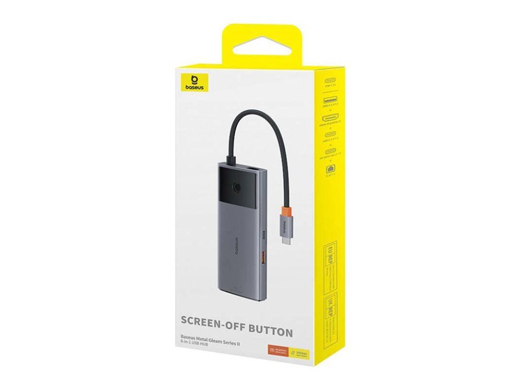 Baseus hub Series 2 USB 6v1 (USB-C/HDMI4K60Hz/USB-C(10Gbps)/USB-A(10Gbps)/RJ45/USB-C(PD) sivý 6932172643294