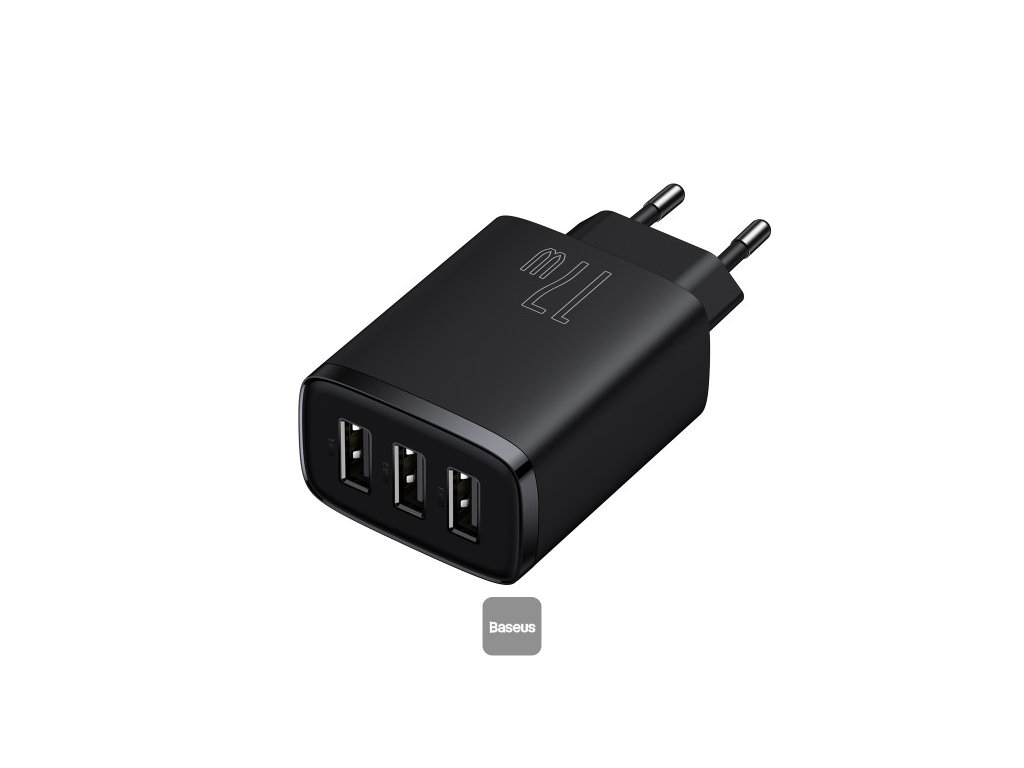 Baseus nabíjačka do siete Compact 3xUSB 17W čierna 6932172606961