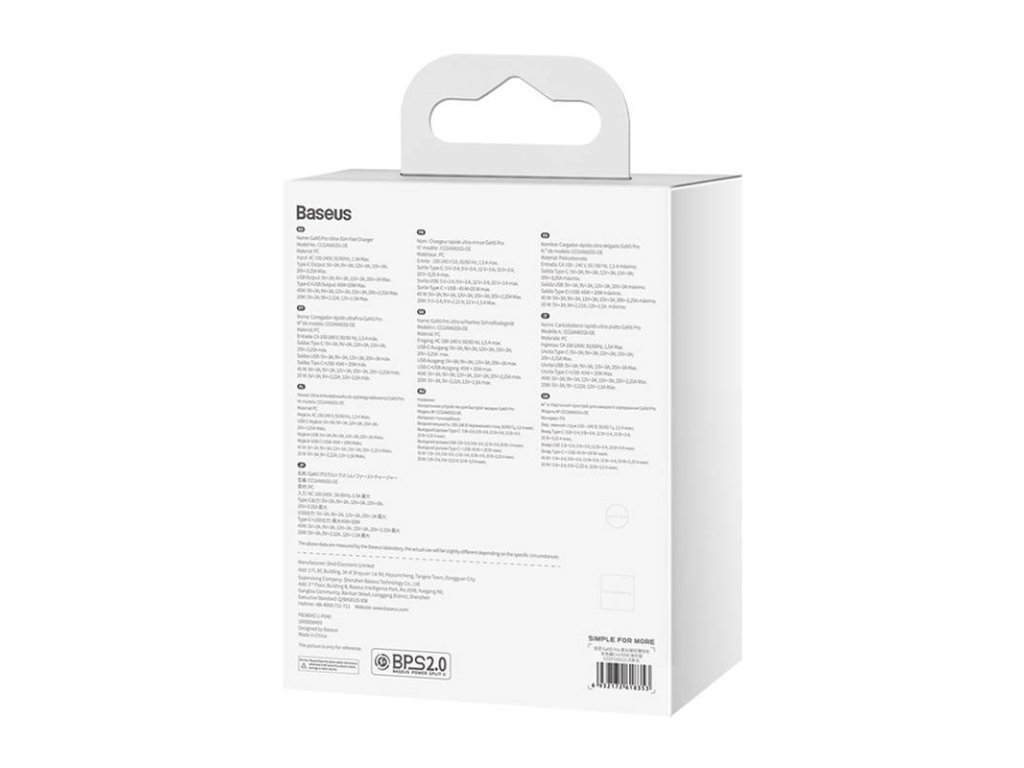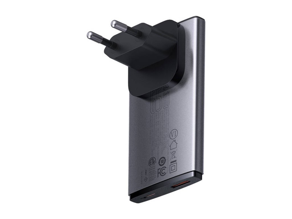 Baseus GaN5 Pro Ultra Slim 65W síťová rychlonabíječka Vlastnosti * výstupní výkon 65W * vyměnitelný adaptér síťového napájení * podpora zásuvek typu C/F (EU) a G (UK) * technologie regulace teploty BCT Technické parametry Vstupní proud: AC 100-240V ~50/60Hz 1,5A max. Porty: * 1x USB-C * 1x USB-A Barva: šedá Rozměry: 92,5x50x16,5mm Hmotnost: 101g Obsah balení: * 1x 65W nabíječka * 1x 100W nabíjecí kabel USB-C 1m * 1x EU zástrčka * 1x UK zástrčka Záruka: 2 rokyDodatočné parametre