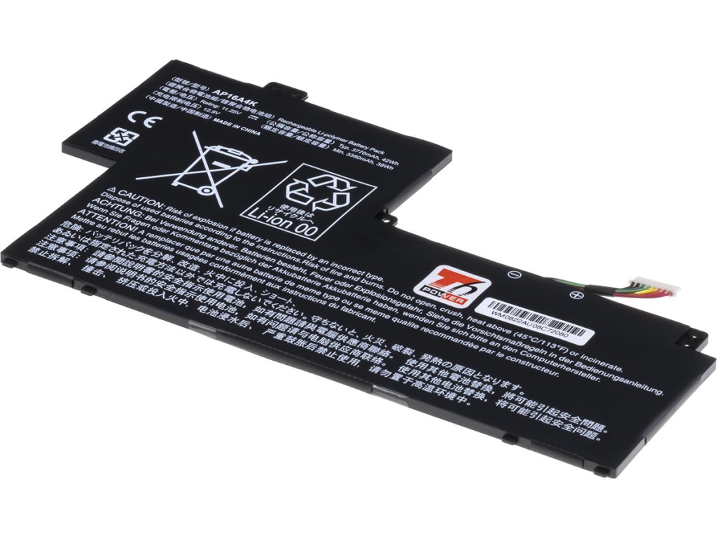 Typ: Li-poly Kapacita: 3770 mAh (42 Wh) Barva: černá Napětí: 11.25 V Rozměry: 255x149x4 mm Hmotnost: 200 g Produktová čísla: AP16A4K, KT.00304.003, KT.00304.007 Kompatibilní modely: Acer Swift 1 SF113-31, Acer Aspire One Cloudbook 11 AO1-132Dodatočné parametre