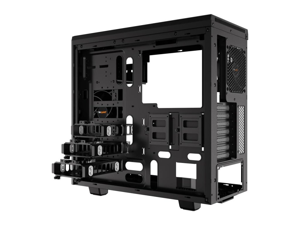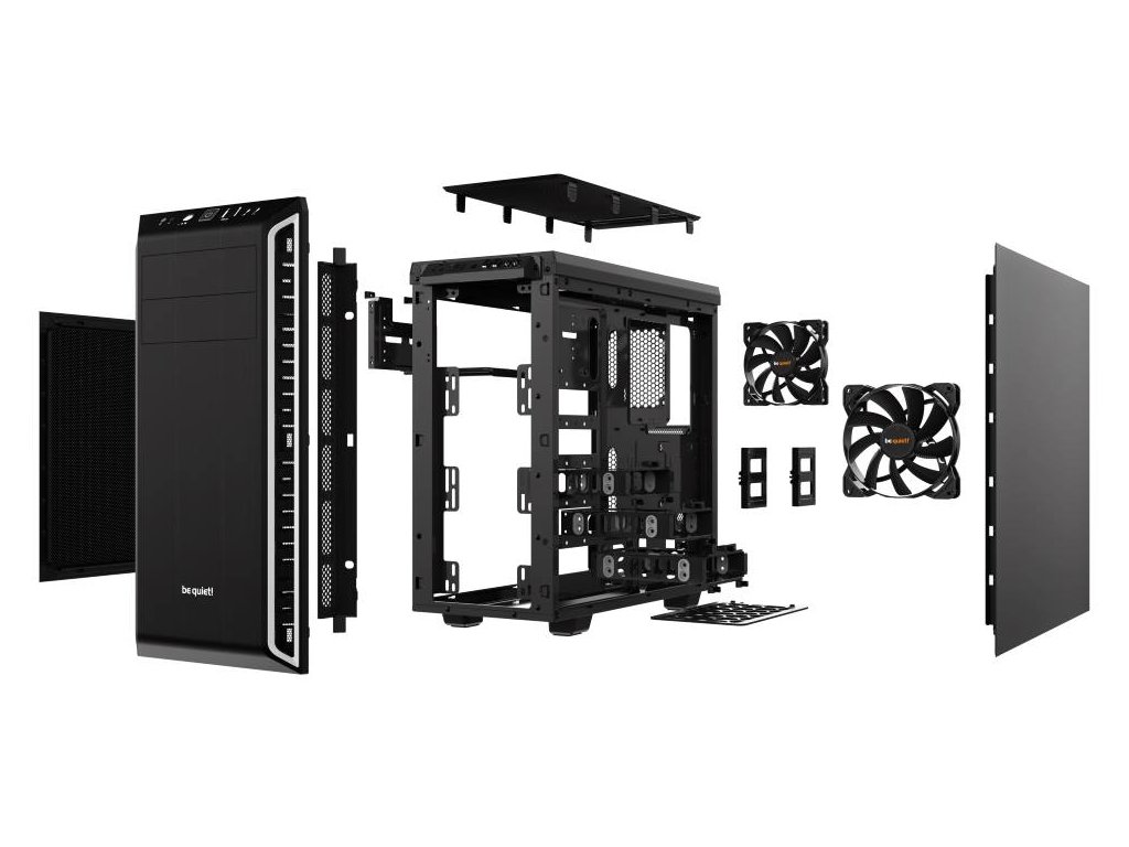 Be quiet! Pure Base 600Skříň, která přináší výbornou funkčnost za příznivou cenu. Tato skříň je díky speciálnímu designu vhodná pro vodní chladič a to až do velikosti 360 mm. Odnímatelný vrchní díl ventilátoru lze úplně uzavřít v případě, že požadujete co nejnižší hluk, případně pro co nejlepší výkon chladiče jej ponechat naplno otevřené. Skříň má předinstalovány dva ultra tiché ventilátory Pure Wings 2. Samozřejmostí je kompletní odhlučnění na horní a bočních stranách. Skříň disponuje i pokročilou kabelovou správou.