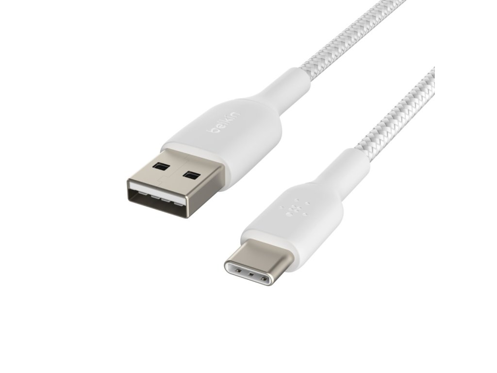 BELKIN kábel opletaný USB-C - USB-A, 2m, biely CAB002bt2MWH