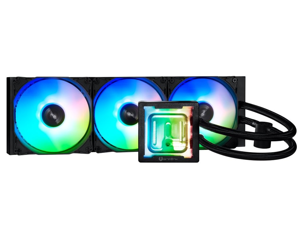 Vodní chladič určený pro chlazení široké škály procesorů. Vyznačuje se vysokou kvalitou, výkonem a spolehlivostí. Disponuje třemi 120 mm velkými ventilátory s ARGB podsvícením. Odolné opletené hadice jsou dlouhé 450 mm a díky dostatečně širokému průměru zaručují plynulý průtok chladicí kapaliny.