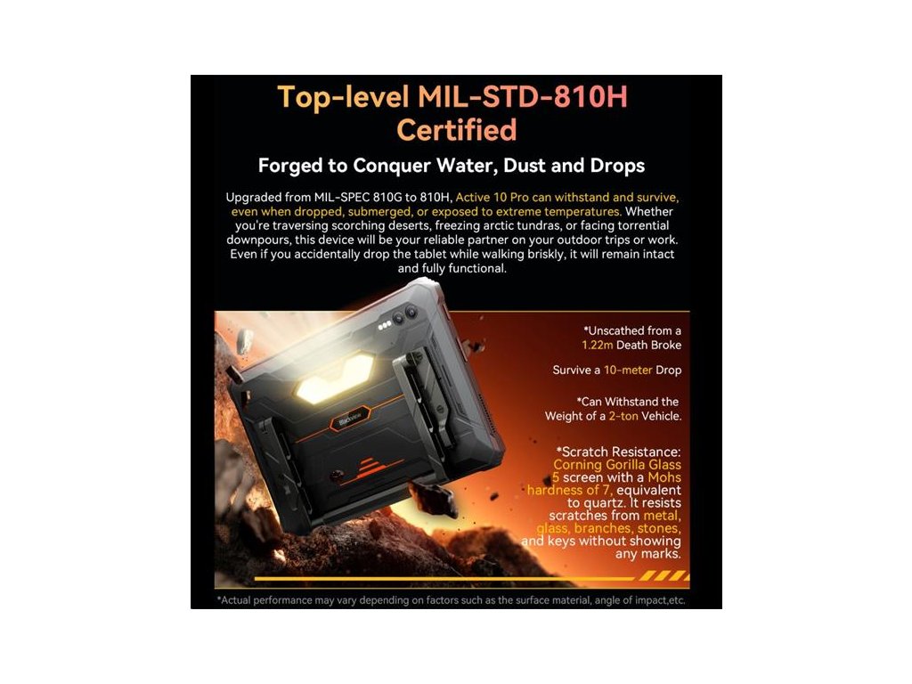 (High standart MIL-SPEC-810H Extremna odolnosť - 1,22 m hodenie o zem, pád z 10 m, odlnosť prejdenia 2 t autom)