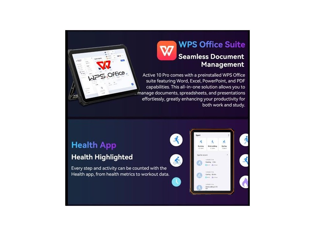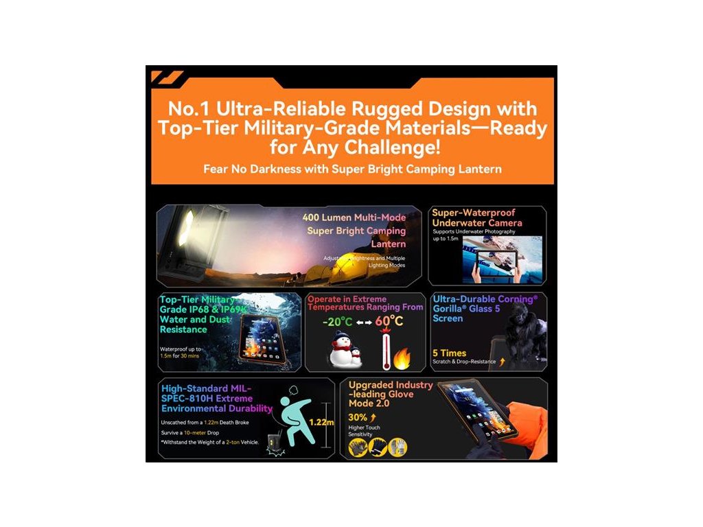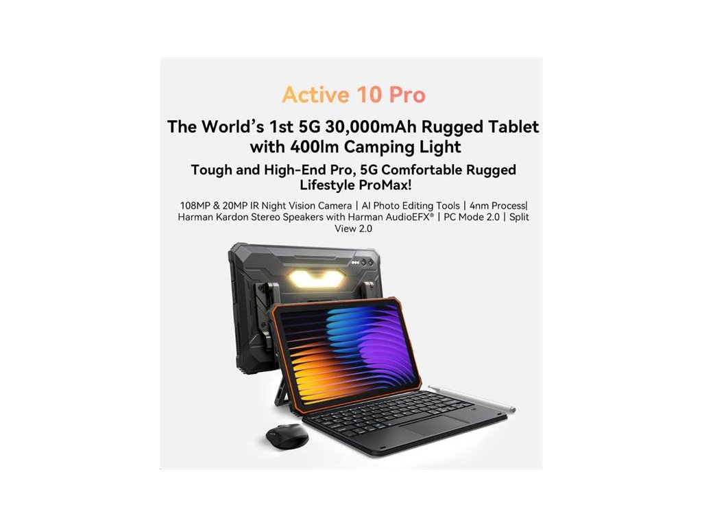 Super odolný tablet s bohatým príslušenstvom a HW a SW výbavou so 400 lm Kampingovým svetlom a HARMAN KARDON Audiom.EU verzia bez sieť. adaptéra