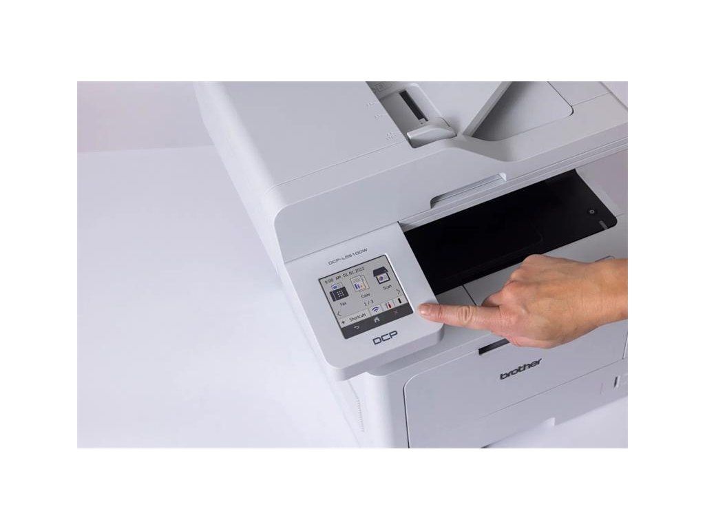 Kľúčové vlastnosti Brother DCP-L5510DW Tlačiareň laserová Brother je pripravená na obojstrannú tlač ISO rýchlosť tlače je 48 strán za minútu Dotykový displej Maximálne tlačové rozlíšenie 1200 x 1200 DPI Tlač vo formáte A4, A5 a A6 Vstupný zásobník tlačiarne Brother DCP-L5510DW má kapacitu až 350 listov Skener si listy bude vkladať automaticky sám Laserová tlačiareň sa pripája cez rozhranie USB, LAN a WiFi Čiernobiela laserová tlačiareň vhodná do kancelárie Vie tlačiť obálky vo formáte DL a COM10 Laserová tlačiareň Brother DCP-L5510DW nahradí aj prácu skenera Pretože je laserová tlačiareň Brother pojatá ako praktické multifunkčné zariadenie, zastane prácu kopírky aj spoľahlivého skenera. Ušetríte tak plno miesta na stole, ale aj investície spojené s nákupom ďalšieho vybavenia. Laserová tlačiareň vám dovolí skenovať v rozlíšení?1200 x 1200 DPI a to príjemnou rýchlosťou 28 str./min.. Veľkým kladom multifunkčnej tlačiarne Brother DCP-L5510DW je praktický automatický podávač, ktorý za vás bude vkladať stránky. Na rýchle odoslanie dokumentov?je tu skenovanie rovno do mailu. Technické parametre Farba tlače: Čiernobiela Technológia tlače: Laserová Určenie: Do kancelárie Funkcie: Automatická obojstranná tlač (duplex), Kopírovanie a skenovanie Pripojenie: USB, LAN, WiFi Formáty papiera: A4, A5, A6 Formáty obálok a ďalšie: DL, COM10 Funkcie skenera: Automatický podávač, Skenovanie do e-mailu Rozlíšenie plochého skenera: 1200 x 1200 DPI Rýchlosť skenovania: 28 str./min. Rozlíšenie tlače: 1200 x 1200 DPI Rýchlosť tlače čiernobielo – ISO: 48 str./min. Vstupný zásobník: 350 listov Doba tlače prvej strany (čb tlač): 6,7 s Maximálne mesačné zaťaženie: 90 000 str./měsíc Výstupný zásobník: 150 listov Rozmery Výška: 448 mm Hĺbka: 461 mm Šírka: 417 mm Hmotnosť: 16,9 kg Displej: Dotykový Farba: Sivá Balenie obsahuje: Dokumentácia, Napájací kábel, Štartovací tonerDodatočné parametre