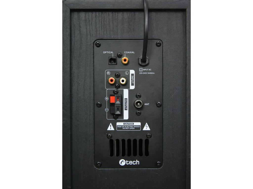 Aktivní stereo sada reproduktorů c-tech IMPRESSIO Virtus Sada dřevěných sloupových reproduktorů s integrovaným zesilovačem, MP3 přehrávačem a Bluetooth. Poslouchejte vaší oblíbenou hudbu, vychutnejte si doma filmy, nebo hraní na herní kozole s mohutným a plným zvukem. Díky USB konektoru a slotu pro paměťové karty SD, můžete přehrávat svoji oblíbenou hudbu ve formátu MP3 nebo FLAC. Navíc můžete přes integrovaný Bluetooth modul přehrávat skladby přímo z vašeho mobilu, či tabletu s kvalitním zvukem, plným basů i všech detailů. Kromě toho je v reproduktoru integrované i FM rádio s pamětí na uložení stanic. Nemáte-li po ruce žádné MP3/FLAC soubory, nebo hudbu v mobilu, jednoduše si pusťte rádio. Díky možnosti použít externí FM anténu, bude příjem signálu mnohem kvalitnější. Televizi nebo herní konzoli připojíte snadno díky digitálnímu optickému nebo koaxiálnímu vstupu. Pokud Vaše televize digitální výstup nemá, můžete využit analogové zapojení RCA audio kabelem. V každém případě bude Váš zážitek ze sledování filmu, nebo hraní hry, na úplně jiné úrovni. S reproduktory Virtus si opravdu užijete domácí kino. Zvuk můžete na výstupu regulovat pomocí hlavního nastavení hlasitosti, ovladače nastavení basů a výšek. Pro snadné a rychlé nastavení zvuku různých hudebních žánrů je k dispozici přednastavený ekvalizér. Předvolby jsou: NORMAL -> POP -> ROCK -> JAZZ -> CLASSIC -> CUT V pohodlí Vašeho obývacího pokoje asi nebudete sedět přímo u reproduktoru, proto budete častěji k jeho ovládání používat dodaný dálkový ovladač. Ten zvládne většinu funkcí, jako je: upravení hlasitosti, volba skladby nebo FM stanice, spuštění a přerušení přehrávání, nebo volbu zdroje zvuku mezi Bluetooth, FM rádiem, pamětí USB, nebo SD kartou a LINE-IN vstupem, optickým a koaxiálním vstupem. Reproduktory IMPRESSIO Virtus Vám ušetří spoustu peněz i starostí. Odpadne zdlouhavé hledání vhodných pasivních reproduktorů a samostatného zesilovače. Ušetříte tak i více než 70% nákladů na ozvučení Vašeho pokoje. Navíc, v balení reproduktorů Virtus najdete už všechnu potřebnou kabeláž ve vysoké kvalitě. Pozlacené konektory a dostatečně dimenzovaný průměr kabelů zajistí kvalitní přenos zvuku s minimální ztrátou. Systém C-TECH IMPRESSIO Virtus je prostě neodolatelný! Hlavní funkce Vysoký výkon - maximální hudební výkon až 800W Vše v balení - odpadá nutnost dokupovat drahé příslušenství a kabeláž Široké možnosti připojení - až 7 zdrojů zvuku, 1x LINE-IN, 1x COAX, 1x OPTI, USB, SD, FM rádio, Bluetooth Celodřevěná konstrukce - kvalitní MDF konstrukce ozvučnice s bass reflexem pro perfektní reprodukci všech frekvencí 3-pásmová konstrukce - 8'' basový, 5'' středový, 1'' výškový reproduktor Informační displej - zobrazení aktuálního vstupu, času skladby, frekvence rádia a pod. Dálkový ovladač - ovládejte sestavu z pohodlí Vaší sedačky Specifikace Přehrávání MP3: ANO - z USB paměti a SD paměťové karty Max. kapacita paměti: až 32GB, při formátování FAT32 Podporované hudební soubory: MP3, FLAC Integrované Bluetooth: Ano, v5.0 Maximální hudební výkon: 800W Výkon RMS: 100W Frekvenční odezva: 20Hz – 20kHz Odstup signálu od šumu: ? 78dB Napájení: AC 230V (50Hz) 8'' basový reproduktor, 5'' středový reproduktor, 1'' výškový reproduktor Integrované FM rádio, paměť na uložení stanic Možnost připojení externí FM antény (součást balení) Rozměry v*š*h (cm): 78 x 19 x 33 Hmotnost sady (kg): 20,6 V balení najdete 1x aktivní reproduktor 1x pasivní reproduktor Dálkový ovladač Audio kabel (4m) RCA kabel (3m) Optický kabel (3m) Koaxiální kabel (3m) Redukce RCA -> 3,5mm jack Externí FM anténa ManuálParametre produktu