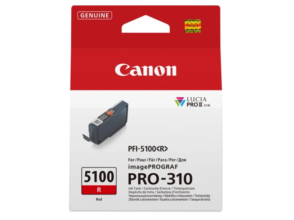 Canon PFI-5100R červená Cartridge pro tiskárnu Canon imagePROGRAF PRO-310, 14,4ml Specifikace: Značka tiskárny: Canon Řada tiskárny: ImagePROGRAF Model tiskárny: PRO-310 Barva: Červená Balení: Jednobarevná náplňDodatočné parametre