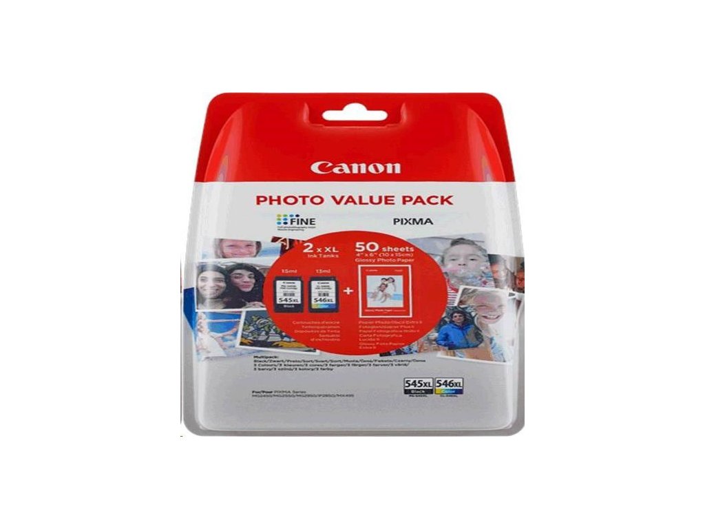 Canon PG-545XL/CL-546XL Ink cartridge Photo Value SEC, černá (black) + barevná (colour) + fotopapír, výtěžnost 400 str. Kompatibilní s Pixma: MG, TS 305, 3150, 3151Dodatočné parametre
