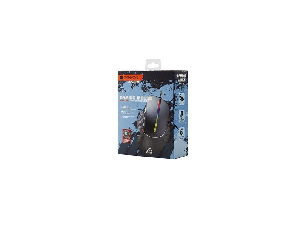 Canyon Apstar, GM-12 herná myš, drôtová, optická, 800-6400 dpi, 6 program. tlač, bočné scroll, LED podsv. CND-SGM12RGB